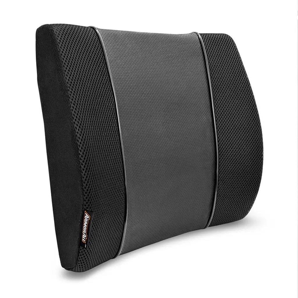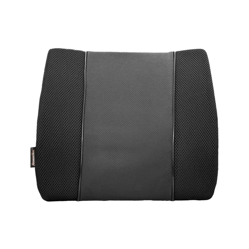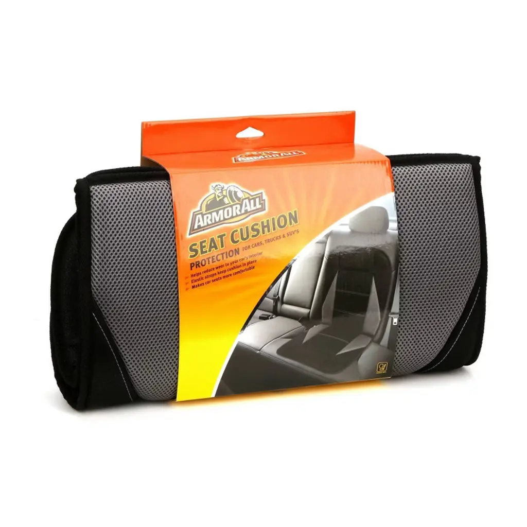 The Armor All Lumbar Cushion offers ergonomic support through its molded foam core layered under composite leather. Its adjustable strap ensures a secure and comfortable fit across various seat backs. The cover zips off for machine washing, making maintenance easy. The cushioning and reinforced support help reduce fatigue during long drives.