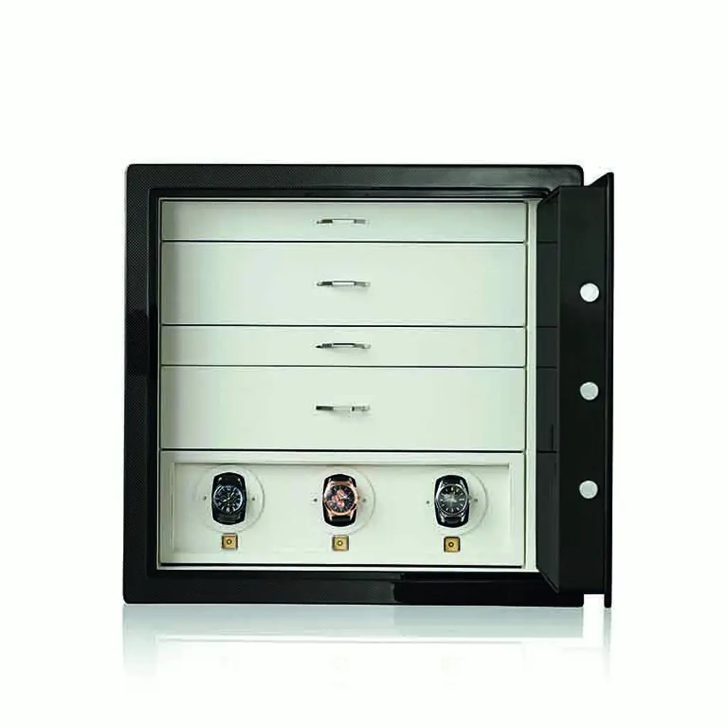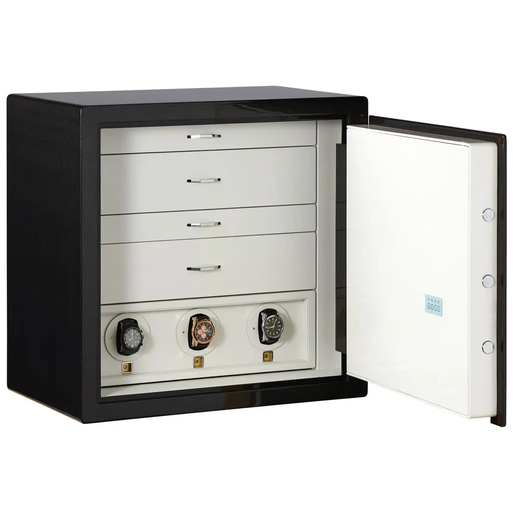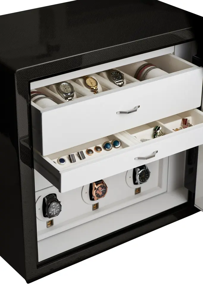 Armored Jewel Safe Polished Carbon Fiber Front And 3 Watch Winders