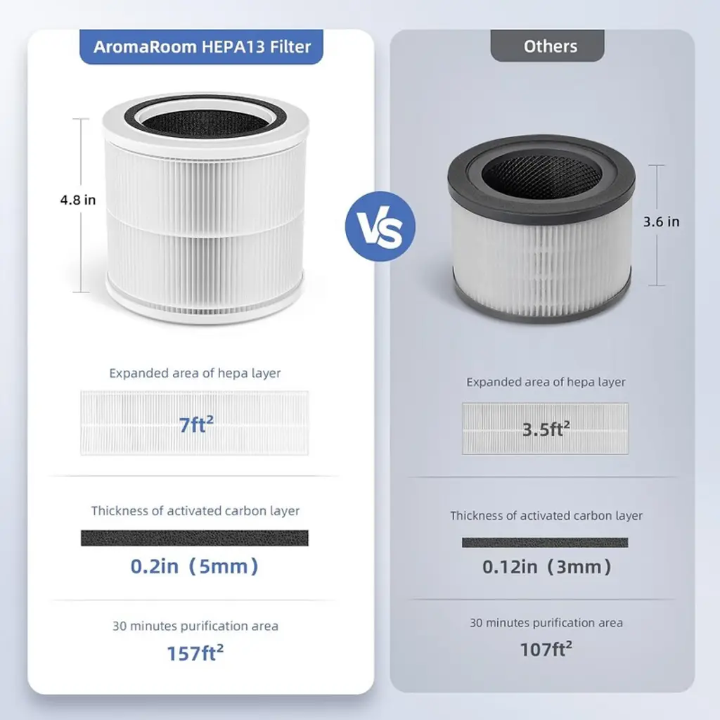 AromaRoom Air Filter Replacement, Compatible with AromaRoom AP100/AP102 Air Purifier, 2 Packs True Hepa H13 High Filtration Air Purifier Filter, Air Cleaner Filter With Efficiency Activated Carbon