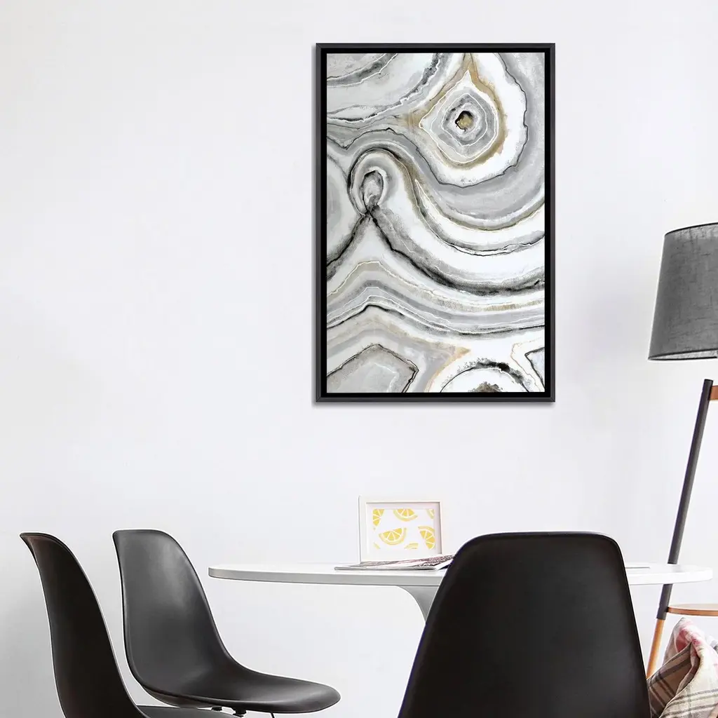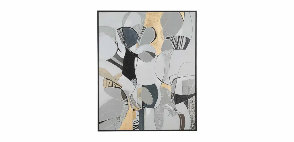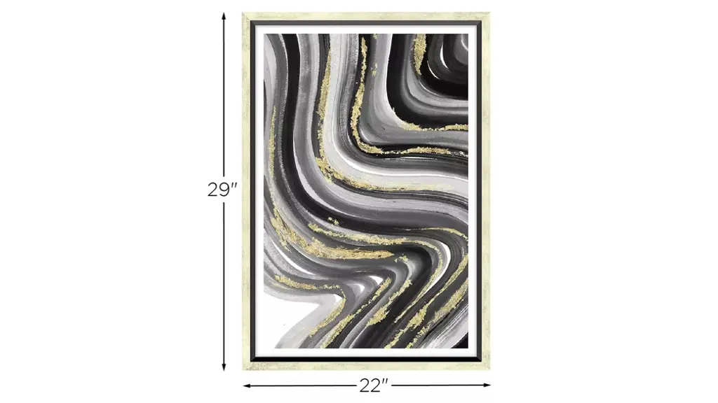 This stunning Swirl wall art is a great mid-century mod minimalistic touch to add to your room. With black white and gold swirls, your room will shine with interest.