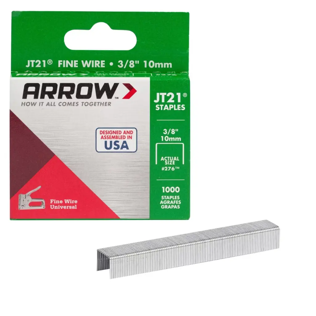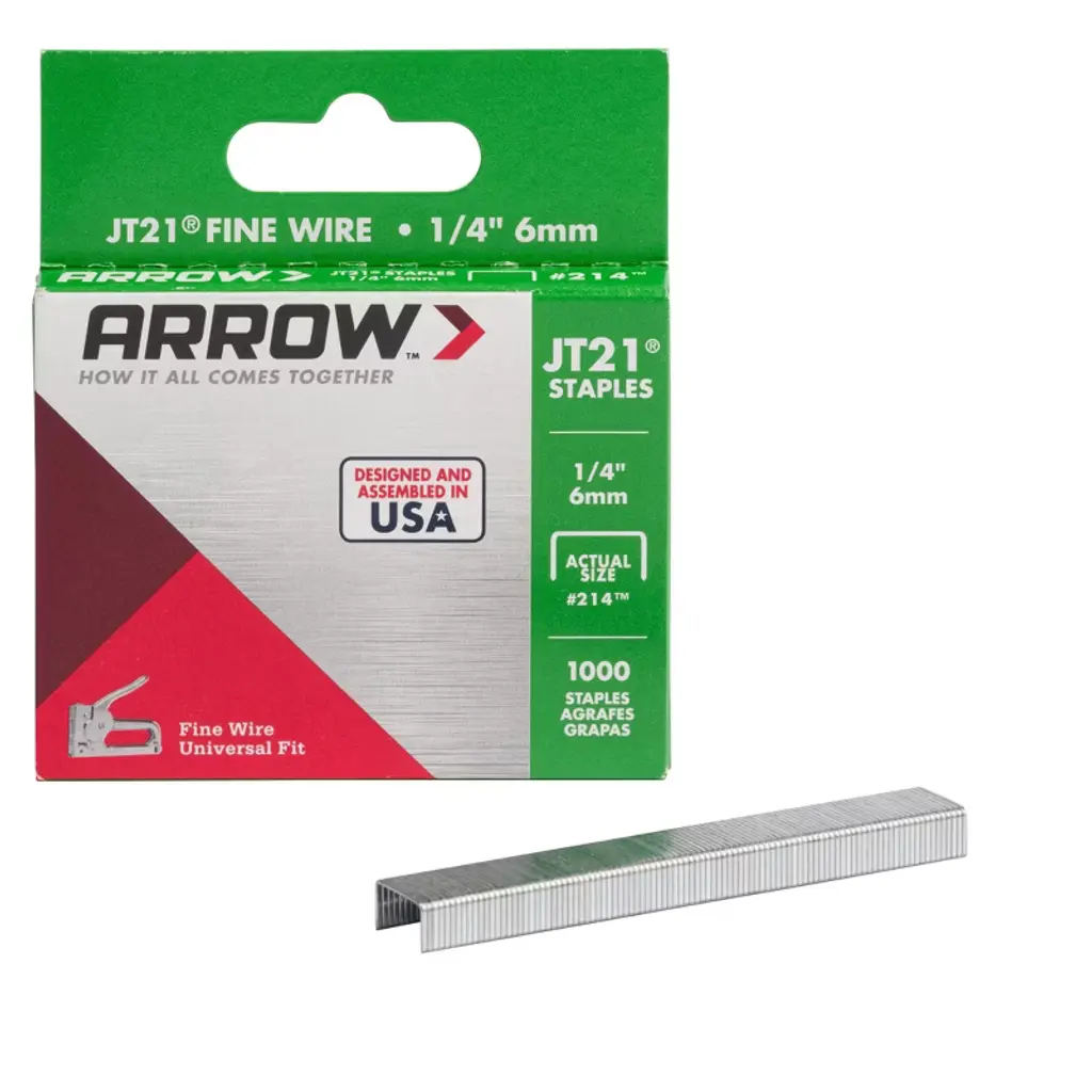 JT21 staples are the T50's little brother. Although often referred to as light duty, there's really nothing "light" about them. Built with the same quality and precision as the T50, these staples utilize a thinner wire in a smaller staple format to deliver great holding power. They are exceptionally easy to fire, making JT21 staples a favorite with crafters, DIYers, and those with limited grip strength. Used for general home repairs, crafting, art projects, and upholstery. Still proudly made in the USA.