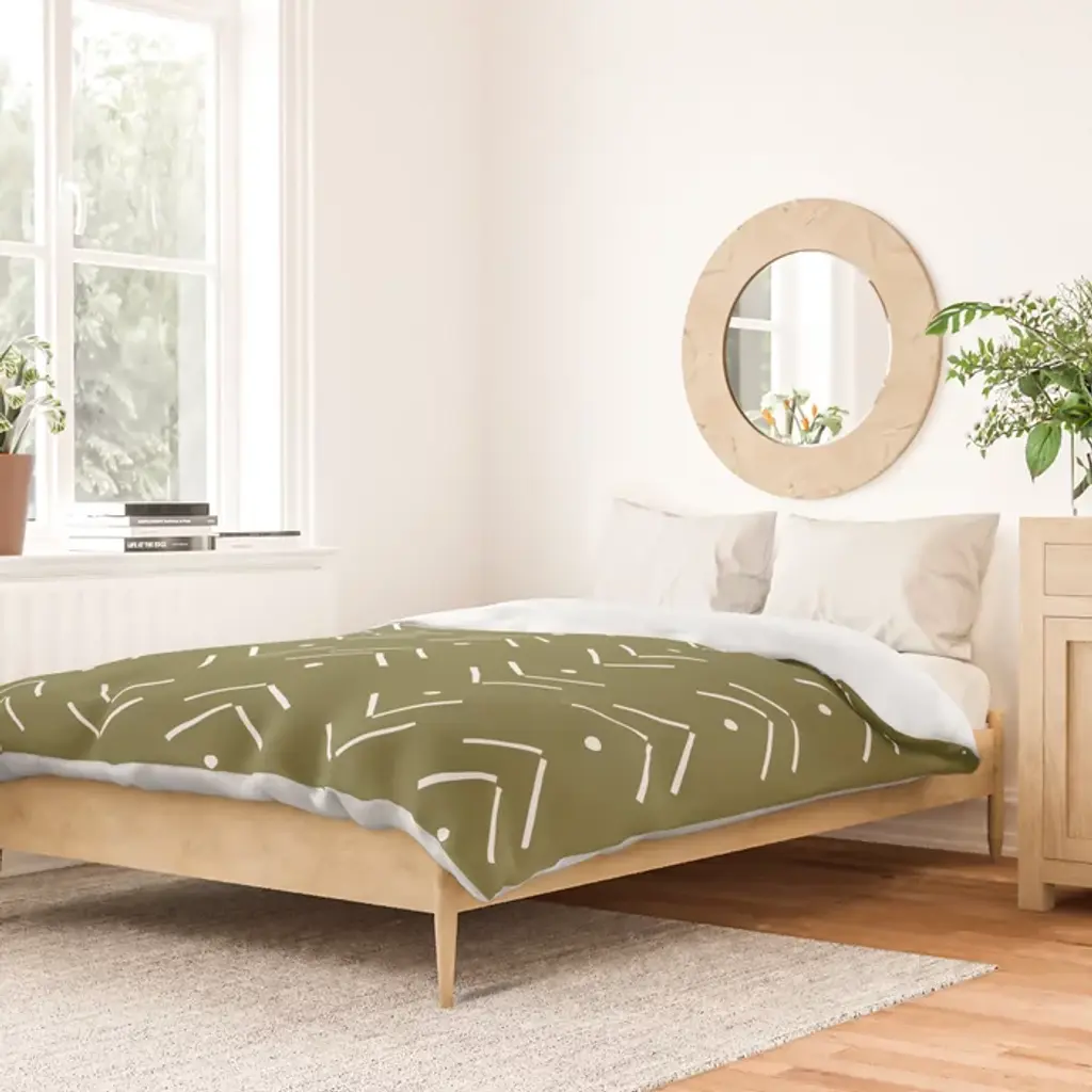 Arrow Lines Pattern Design 7 In Olive Green Duvet Cover