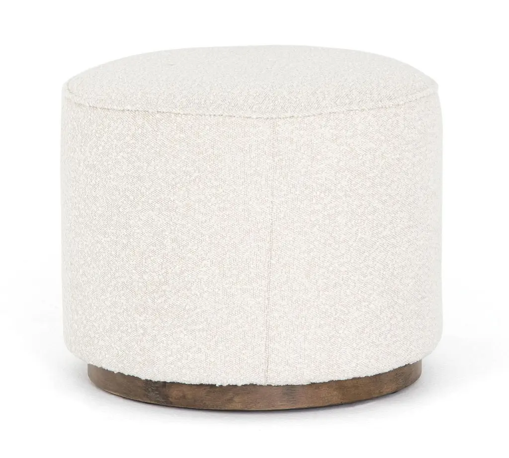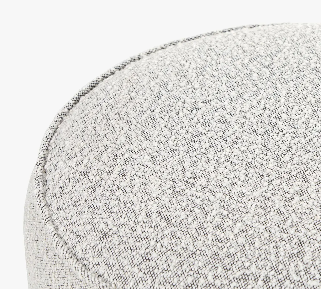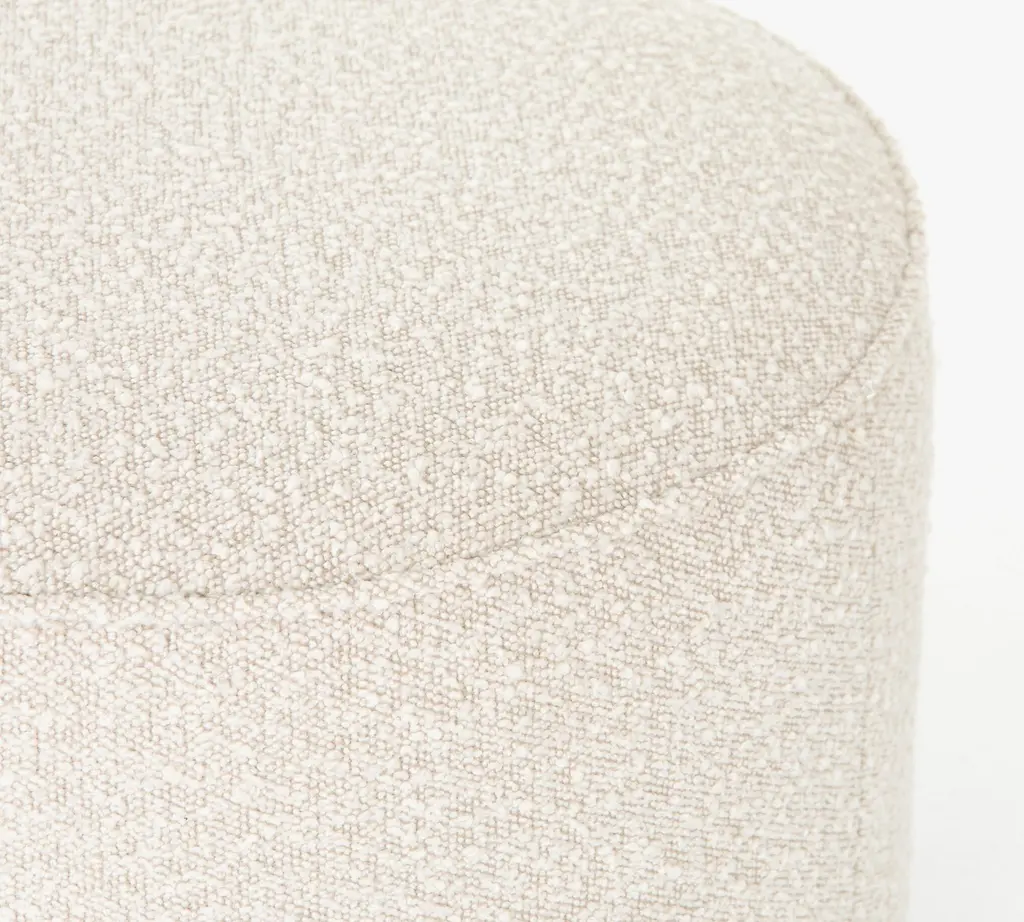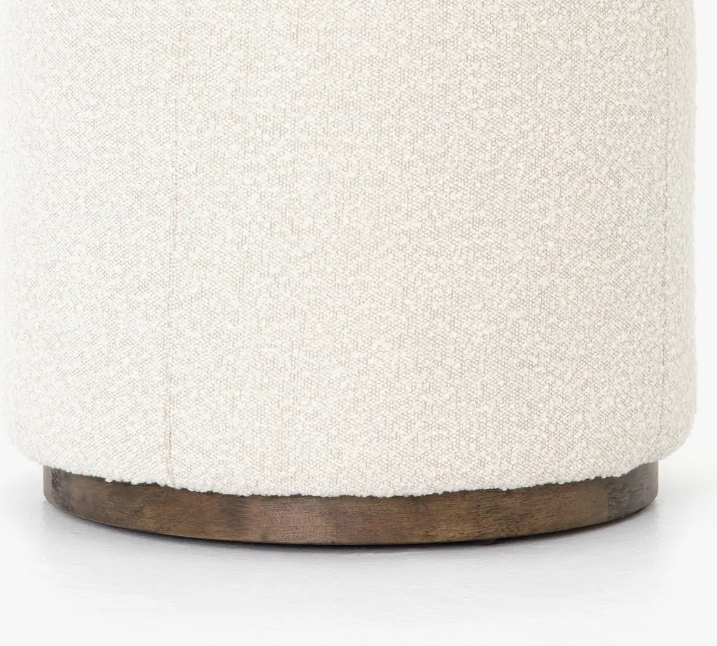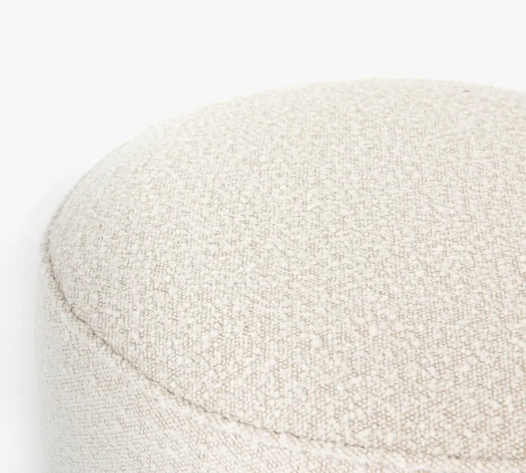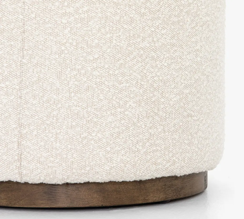 A stool, side table, or footrest – this ottoman comes in your choice of textured fabric in easy neutrals. The smooth cylinder shape slips in easily next to any decor style and the peek of wood at the base adds rich warmth to keep it laid back but luxe.