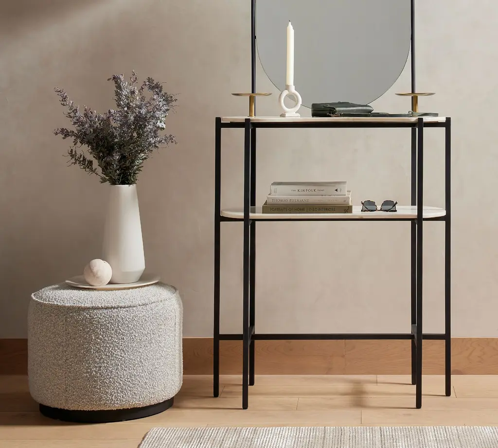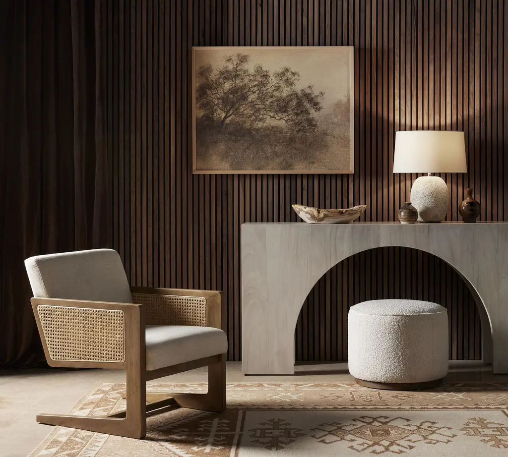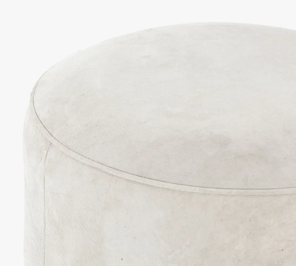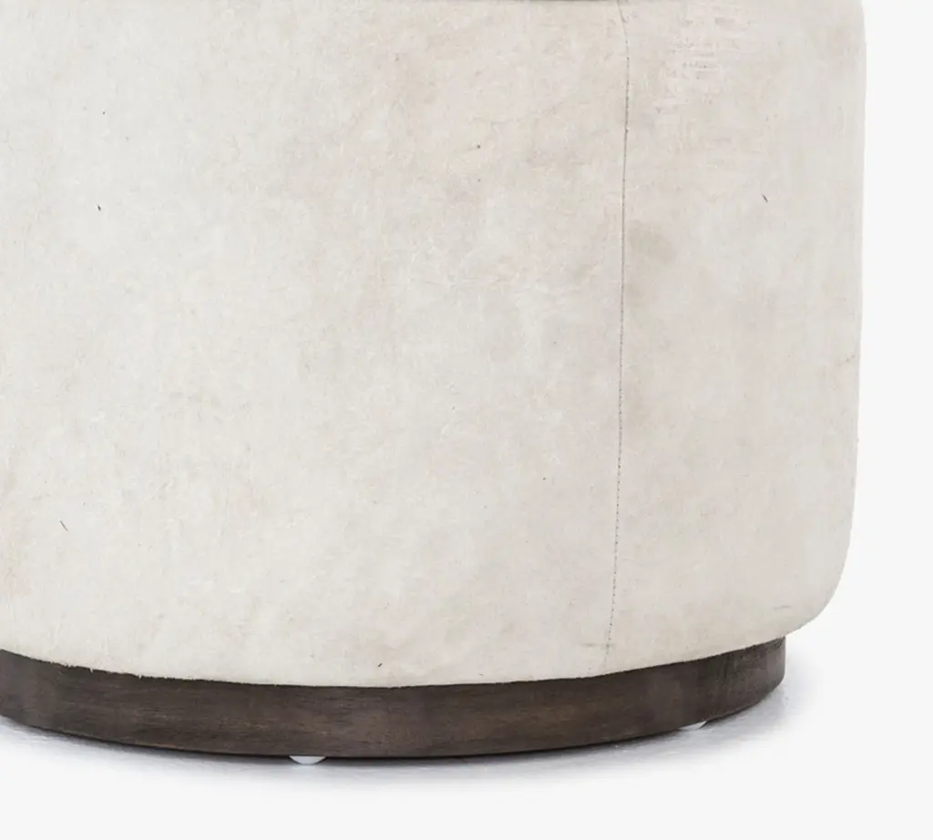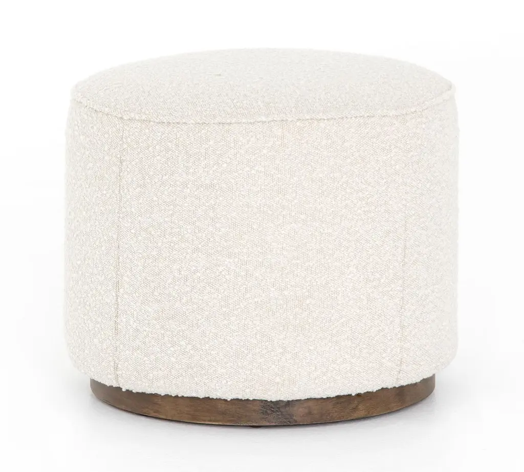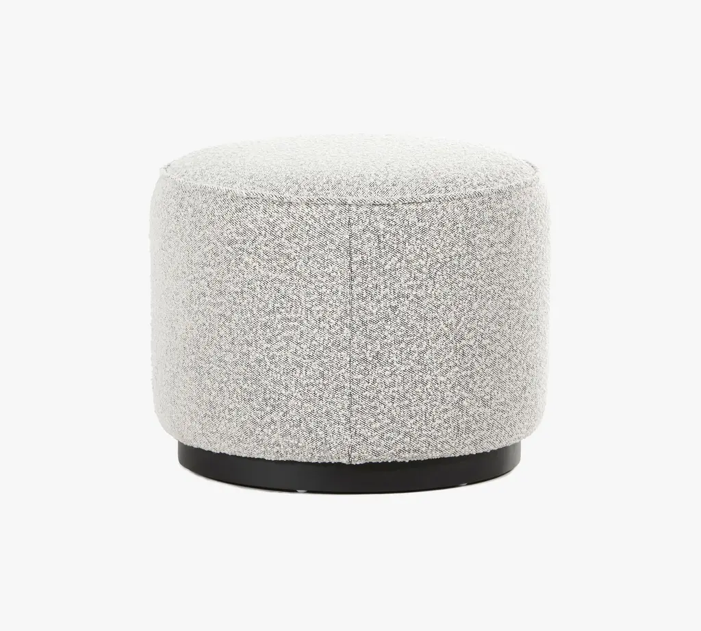 A stool, side table, or footrest – this ottoman comes in your choice of textured fabric in easy neutrals. The smooth cylinder shape slips in easily next to any decor style and the peek of wood at the base adds rich warmth to keep it laid back but luxe.