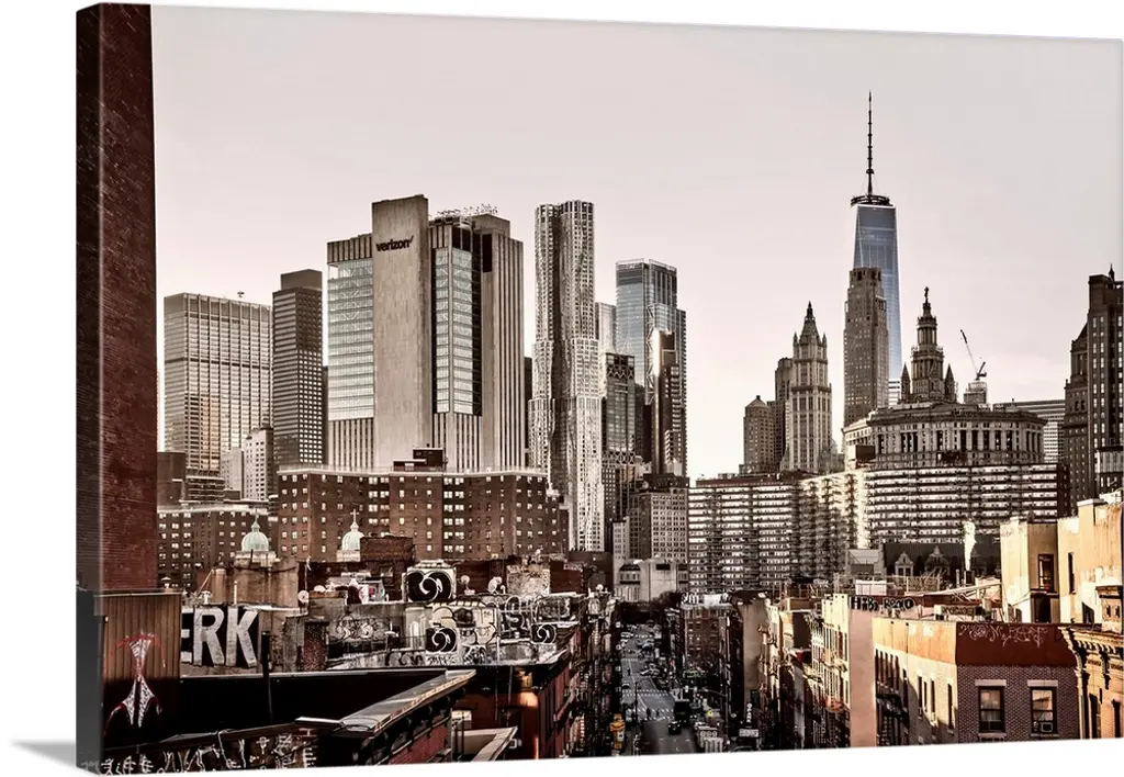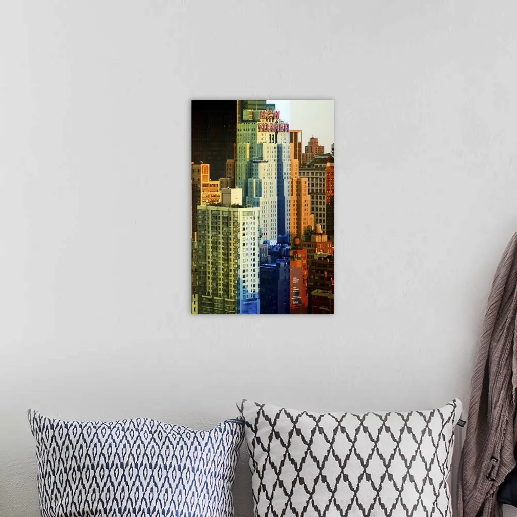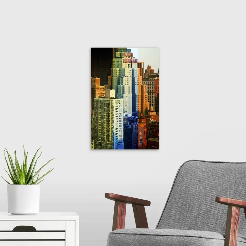 Fine art photo of skyscrapers in New York City with artistic color blocks.