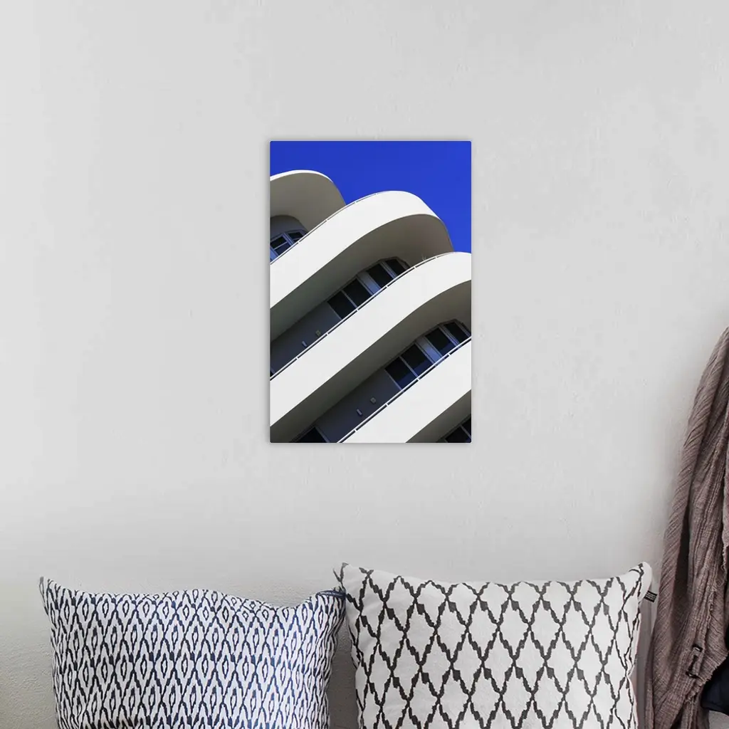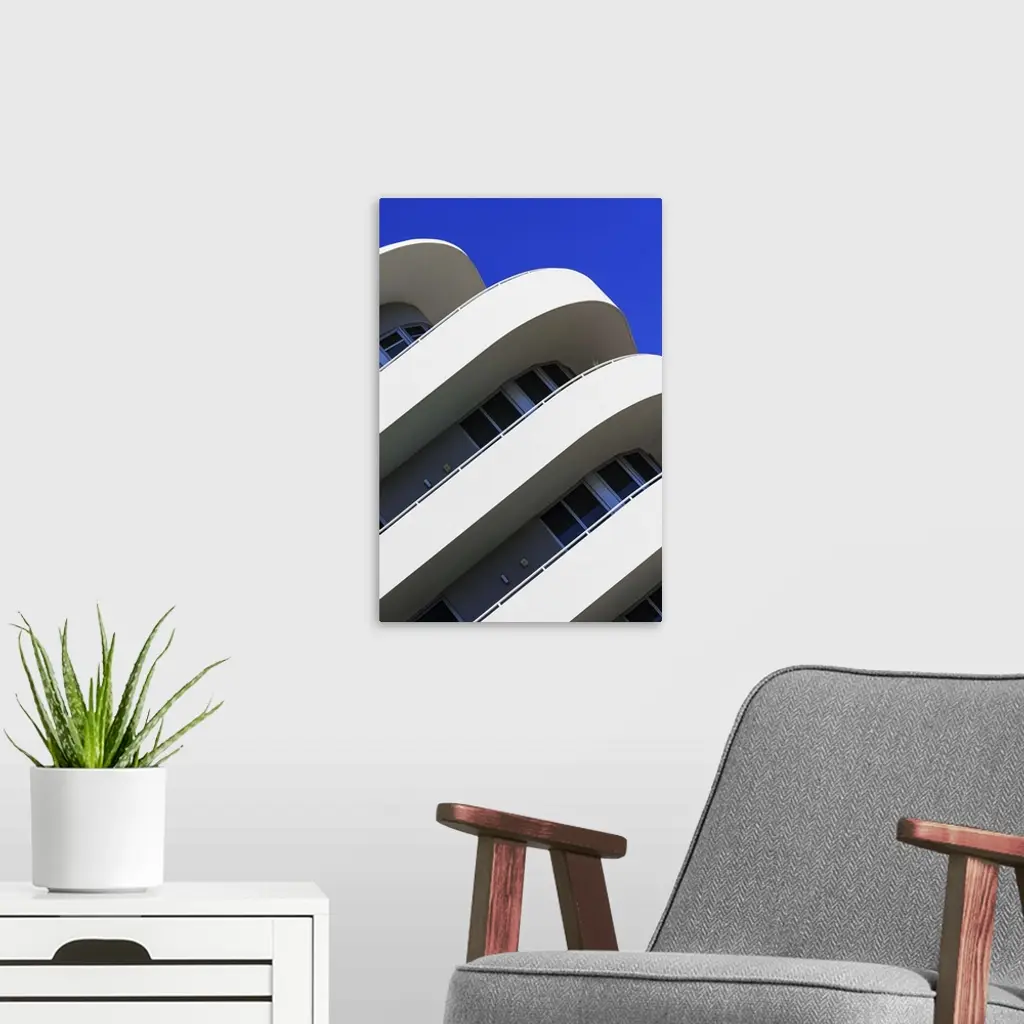 Abstract photo of balconies on an Art Deco style building in Miami Beach, Florida.