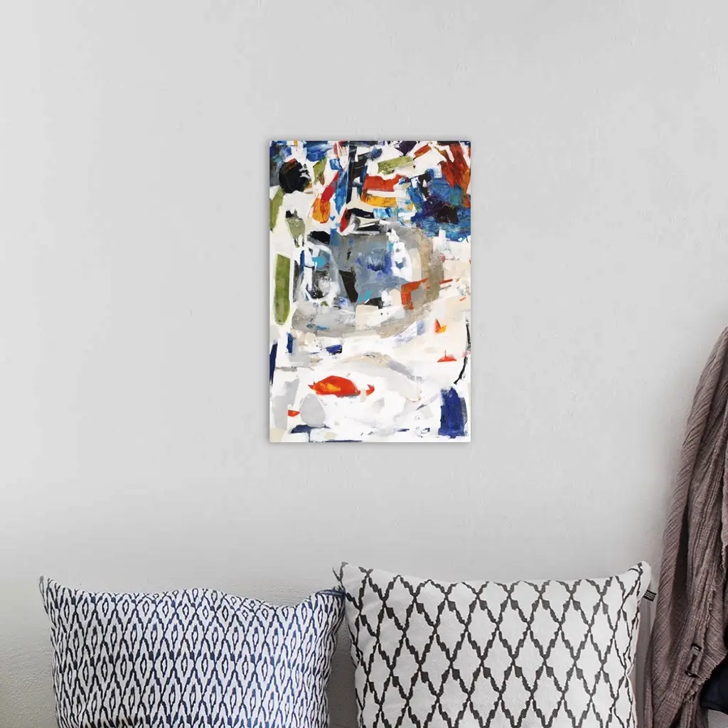 Colorful abstract canvas sectioned out by applying white paint on top to separate.