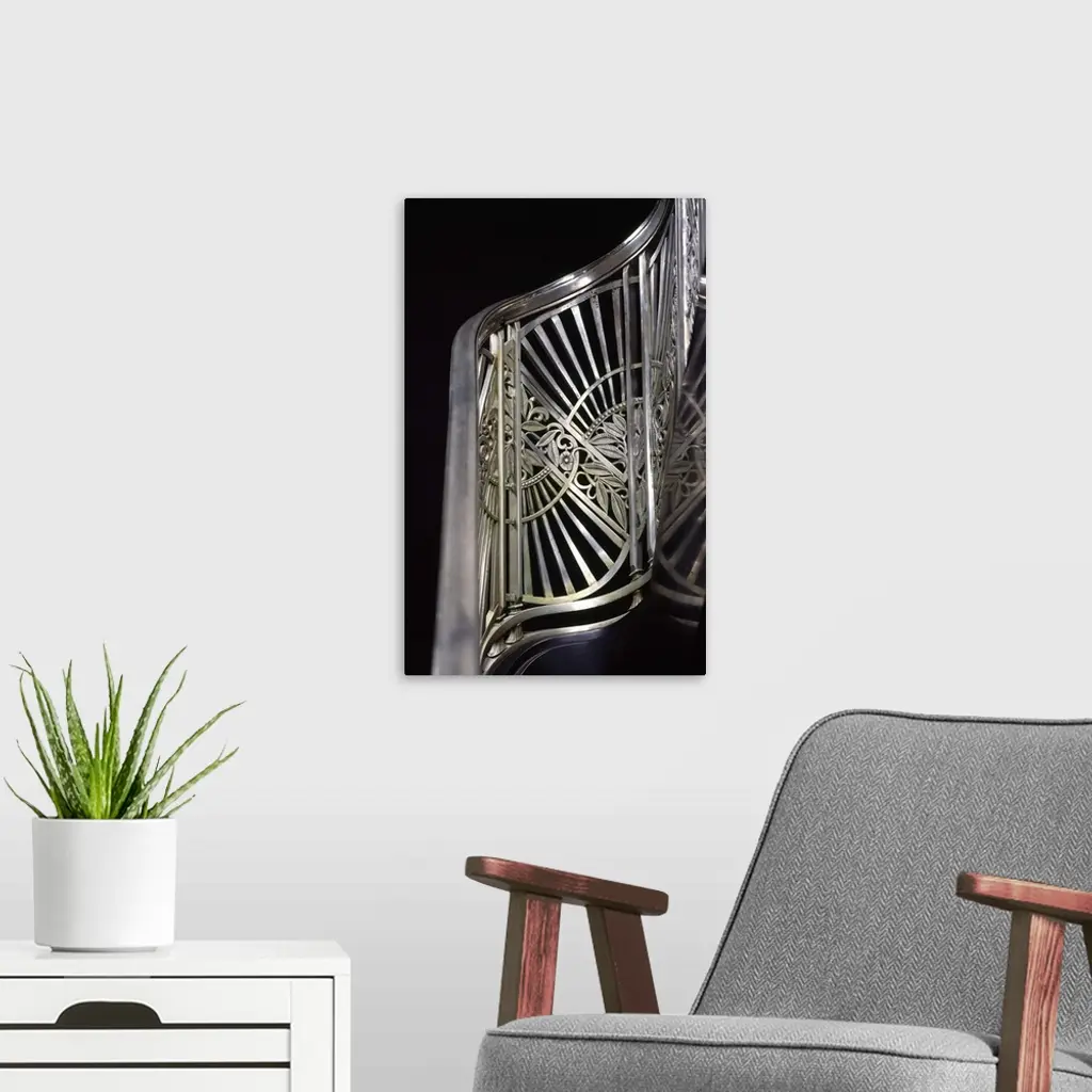 Art deco stairway metalwork, Two North Riverside Plaza, Chicago, Illinois wall art for home and office decor. Discover canvas art prints, photos, mural, big canvas art and framed wall art in GreatBigCanvas.com's varied collections.