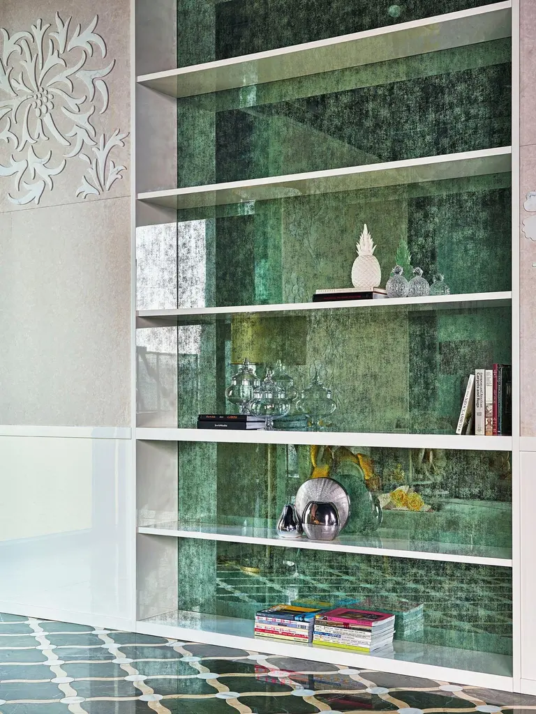 A combination of special techniques and process has created glass sheets that capture the timeless and limitless beauty of precious stones, lava rock, as well as dream landscape.Thirteen unique looks, with swirling veins or slight ripples, transparent and opaque. All option are available in different finishes and back-groundsSolid version in which the patterning and colors are saturated on a pure white baseChromo, mirror and chrome-plated effect reflecting the brilliant colors.Opalescent, has translucent effect and will reflect the colors based on the texture. These can be backlitGem glass has a strong aesthetic character and thanks to the special processing, suitable for multiple uses, application and interpretations. Gem glass can be straight or wavy.