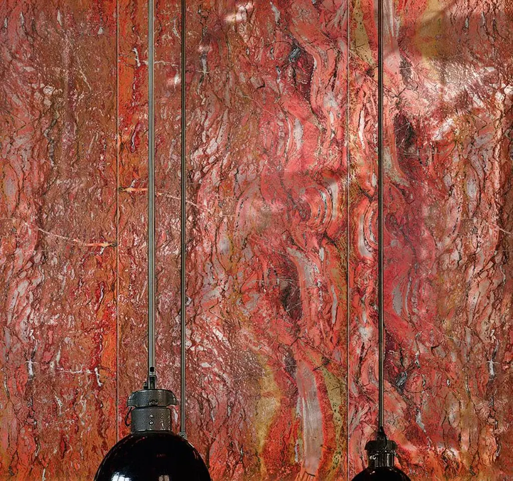 A combination of special techniques and process has created glass sheets that capture the timeless and limitless beauty of precious stones, lava rock, as well as dream landscape.Thirteen unique looks, with swirling veins or slight ripples, transparent and opaque. All option are available in different finishes and back-groundsSolid version in which the patterning and colors are saturated on a pure white baseChromo, mirror and chrome-plated effect reflecting the brilliant colors.Opalescent, has translucent effect and will reflect the colors based on the texture. These can be backlitGem Glass has a strong aesthetic character and thanks to the special processing, suitable for multiple uses, application and interpretations. Gem Glass can be straight or wavy.
