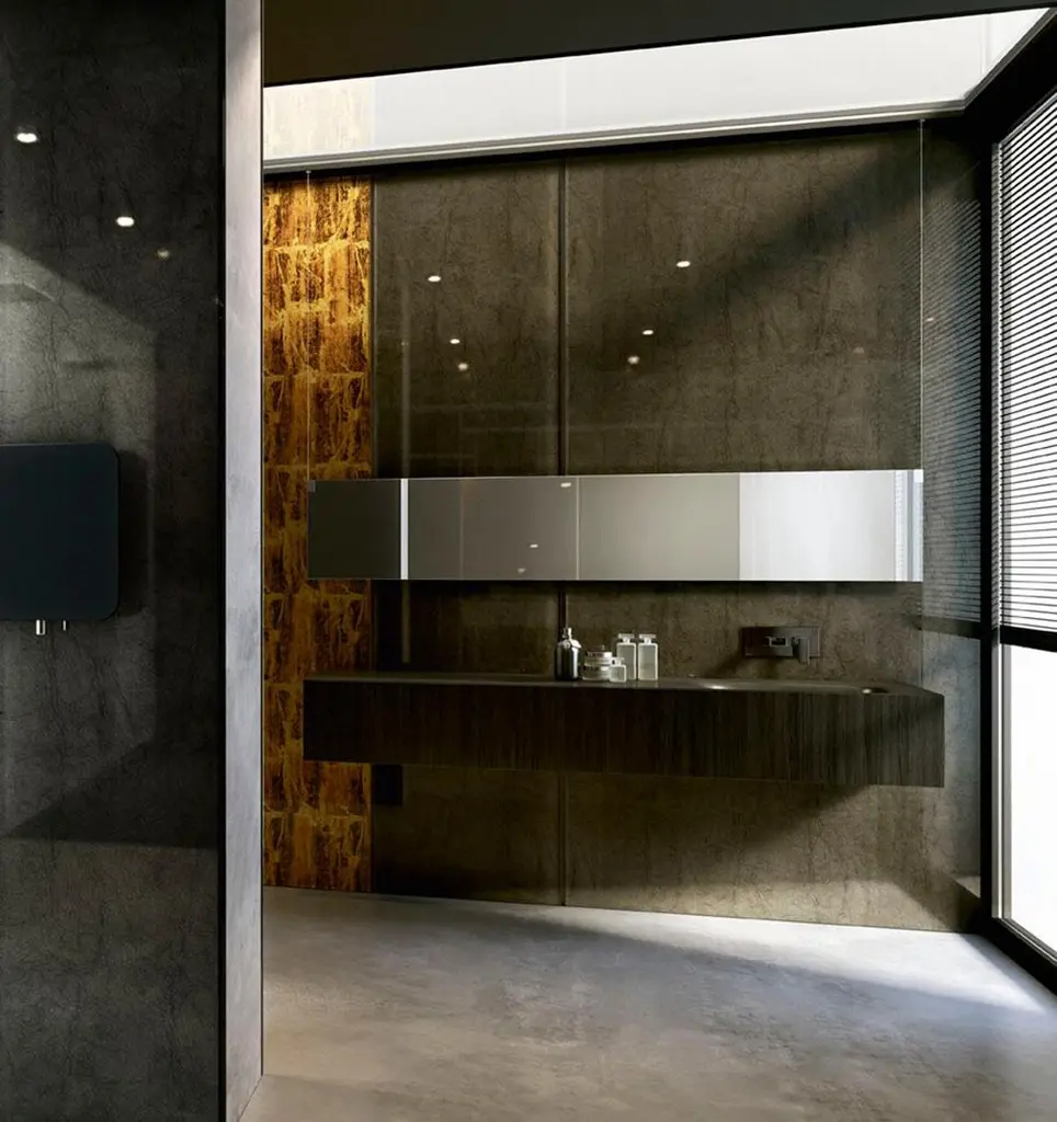 A combination of special techniques and process has created glass sheets that capture the timeless and limitless beauty of precious stones, lava rock, as well as dream landscape.Thirteen unique looks, with swirling veins or slight ripples, transparent and opaque. All option are available in different finishes and back-groundsSolid version in which the patterning and colors are saturated on a pure white baseChromo, mirror and chrome-plated effect reflecting the brilliant colors.Opalescent, has translucent effect and will reflect the colors based on the texture. These can be backlitGem glass has a strong aesthetic character and thanks to the special processing, suitable for multiple uses, application and interpretations. Gem glass can be straight or wavy.