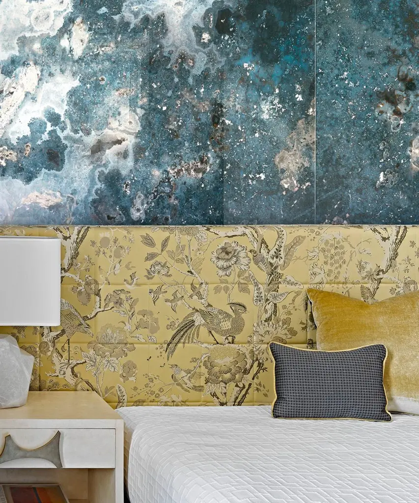 A combination of special techniques and process has created glass sheets that capture the timeless and limitless beauty of precious stones, lava rock, as well as dream landscape.Thirteen unique looks, with swirling veins or slight ripples, transparent and opaque. All option are available in different finishes and back-groundsSolid version in which the patterning and colors are saturated on a pure white baseChromo, mirror and chrome plated effect reflecting the brilliant colors.Opalescent, has translucent effect and will reflect the colors based on the texture. These can be backlitGem Glass has a strong aesthetic character and thanks to the special processing, suitable for multiple uses, application and interpretations. Gem Glass can be straight or wavy.