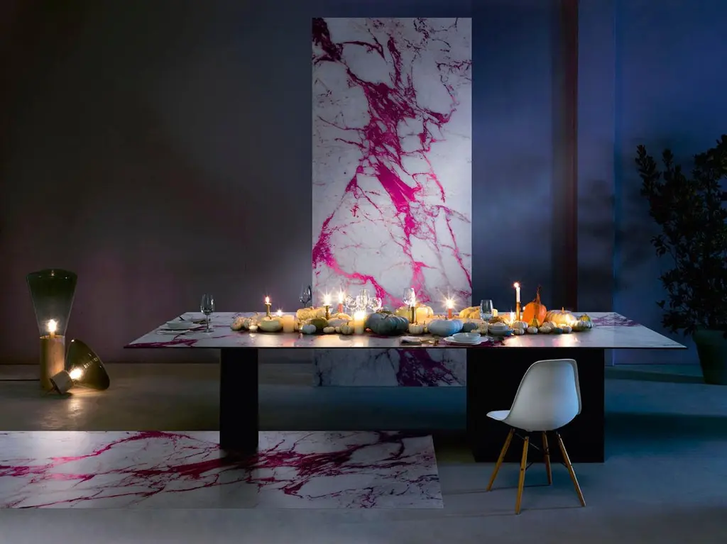 A combination of special techniques and process has created glass sheets that capture the timeless and limitless beauty of precious stones, lava rock, as well as dream landscape.Thirteen unique looks, with swirling veins or slight ripples, transparent and opaque. All option are available in different finishes and back-groundsSolid version in which the patterning and colors are saturated on a pure white baseChromo, mirror and chrome-plated effect reflecting the brilliant colors.Opalescent, has translucent effect and will reflect the colors based on the texture. These can be backlitGem glass has a strong aesthetic character and thanks to the special processing, suitable for multiple uses, application and interpretations. Gem glass can be straight or wavy.