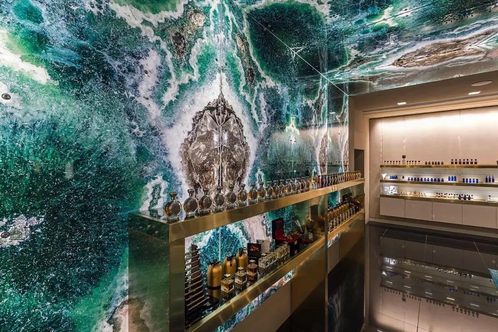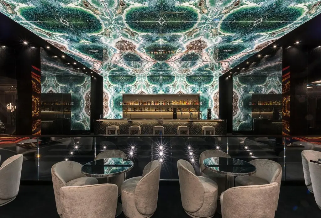 A combination of special techniques and process has created glass sheets that capture the timeless and limitless beauty of precious stones, lava rock, as well as dream landscape.Thirteen unique looks, with swirling veins or slight ripples, transparent and opaque. All option are available in different finishes and back-groundsSolid version in which the patterning and colors are saturated on a pure white baseChromo, mirror and chrome-plated effect reflecting the brilliant colors.Opalescent, has translucent effect and will reflect the colors based on the texture. These can be backlitGem Glass has a strong aesthetic character and thanks to the special processing, suitable for multiple uses, application and interpretations. Gem Glass can be straight or wavy.