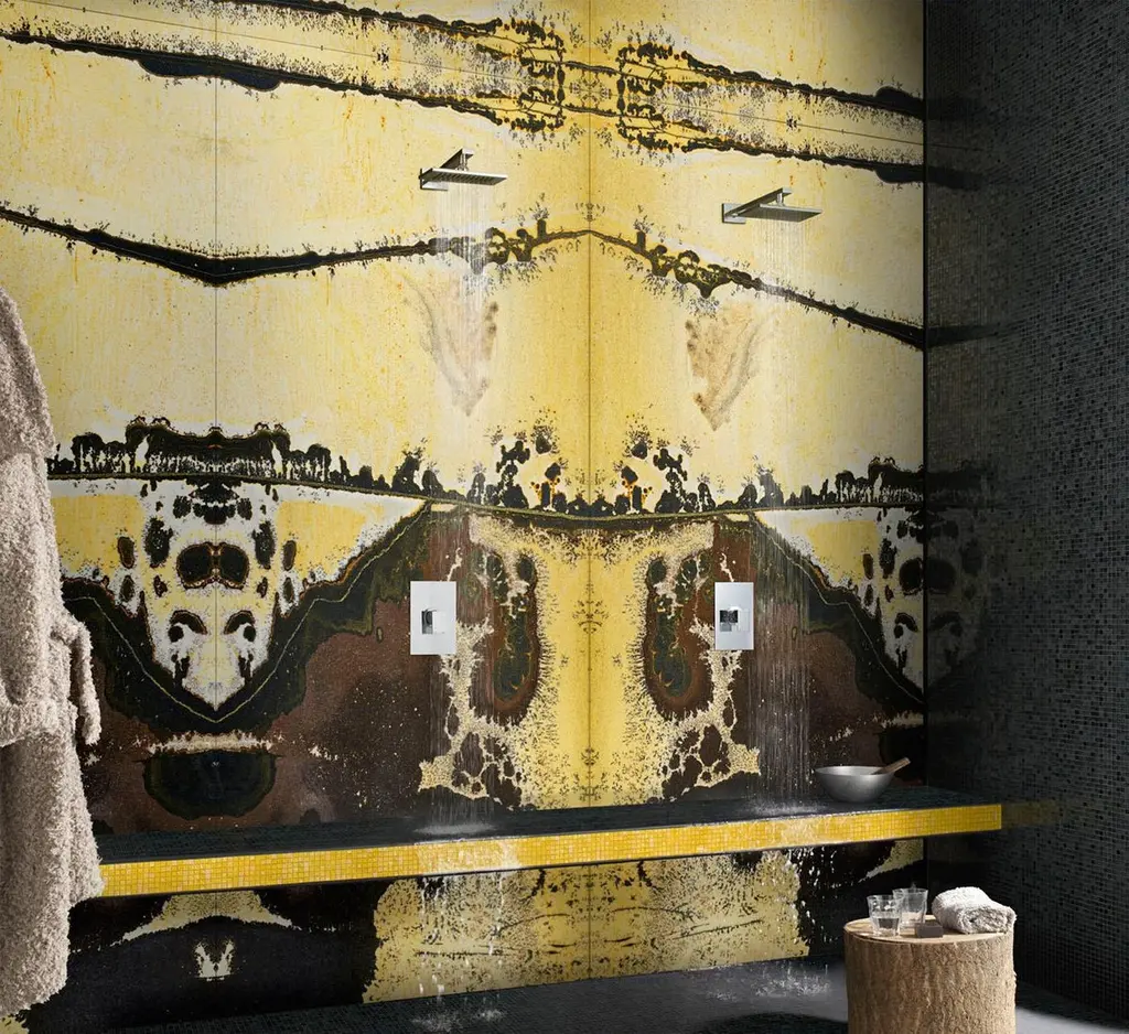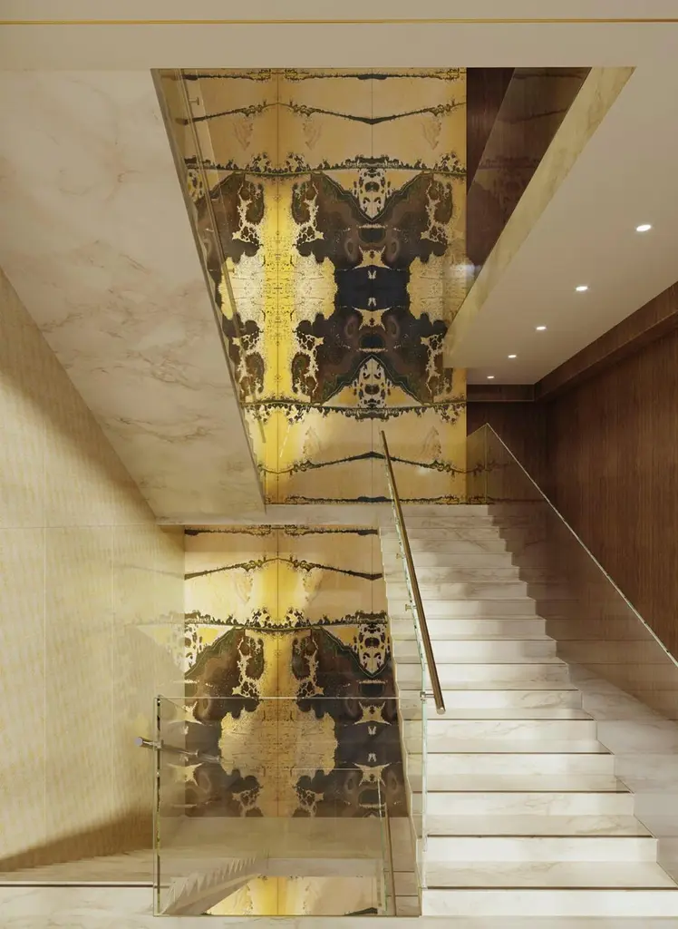 A combination of special techniques and process has created glass sheets that capture the timeless and limitless beauty of precious stones, lava rock, as well as dream landscape.Thirteen unique looks, with swirling veins or slight ripples, transparent and opaque. All option is available in different finishes and back-groundsSolid version in which the patterning and colors are saturated on a pure white baseChromo, mirror and chrome-plated effect reflecting the brilliant colors.Opalescent, has translucent effect and will reflect the colors based on the texture. These can be backlitGem glass has a strong aesthetic character and thanks to the special processing, suitable for multiple uses, application and interpretations. Gem glass can be straight or wavy.