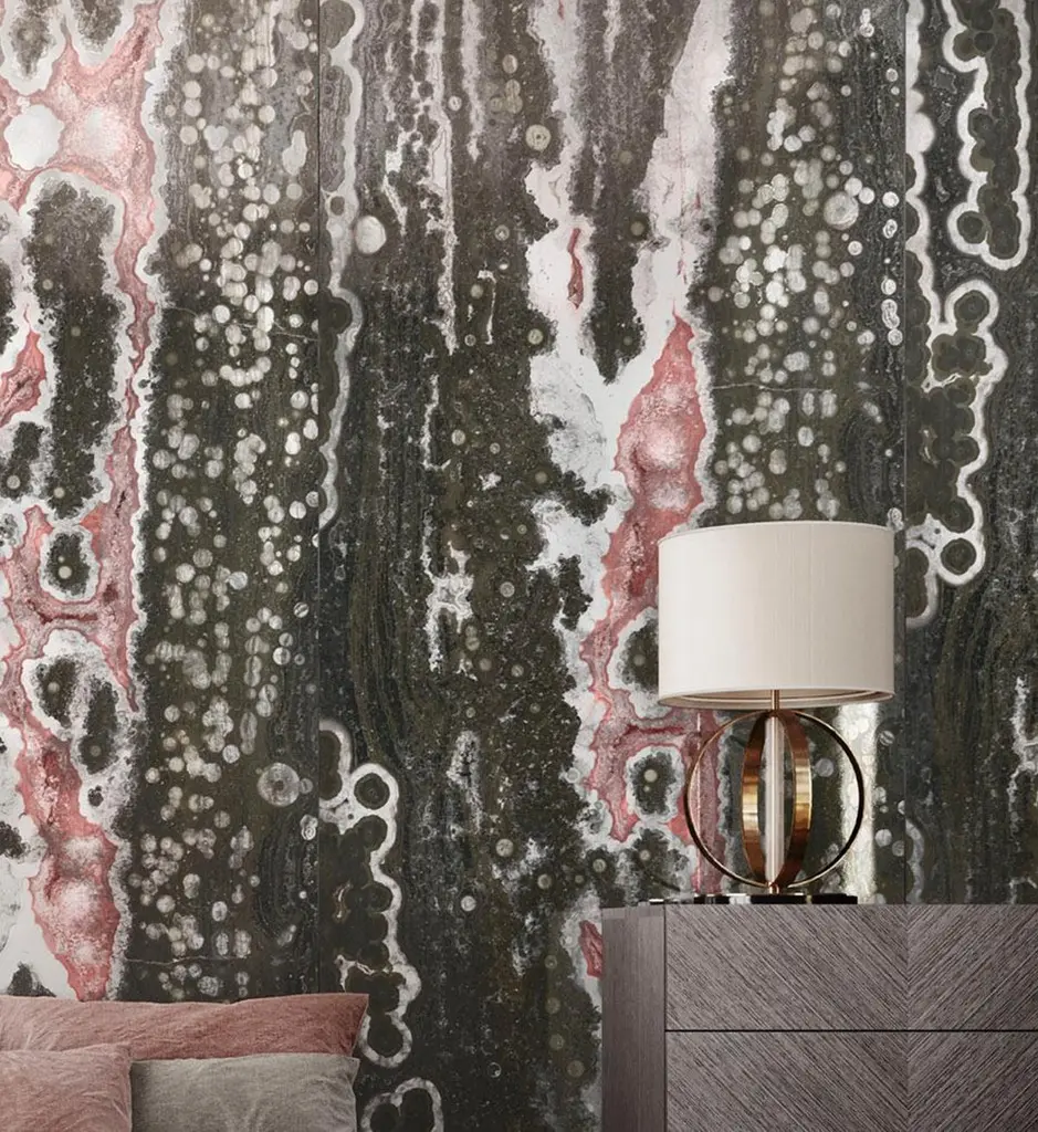 A combination of special techniques and process has created glass sheets that capture the timeless and limitless beauty of precious stones, lava rock, as well as dream landscape.Thirteen unique looks, with swirling veins or slight ripples, transparent and opaque. All option is available in different finishes and back-groundsSolid version in which the patterning and colors are saturated on a pure white baseChromo, mirror and chrome-plated effect reflecting the brilliant colors.Opalescent, has translucent effect and will reflect the colors based on the texture. These can be backlitGem glass has a strong aesthetic character and thanks to the special processing, suitable for multiple uses, application and interpretations. Gem glass can be straight or wavy.