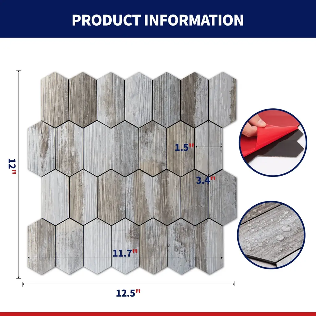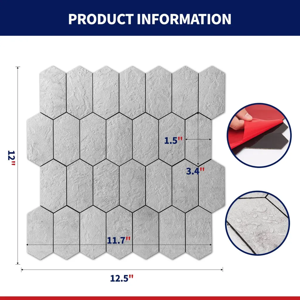 Art3d 10-Sheet Hexagon Tile Peel And Stick Backsplash,12.5x12in - Grey