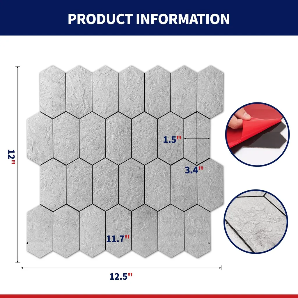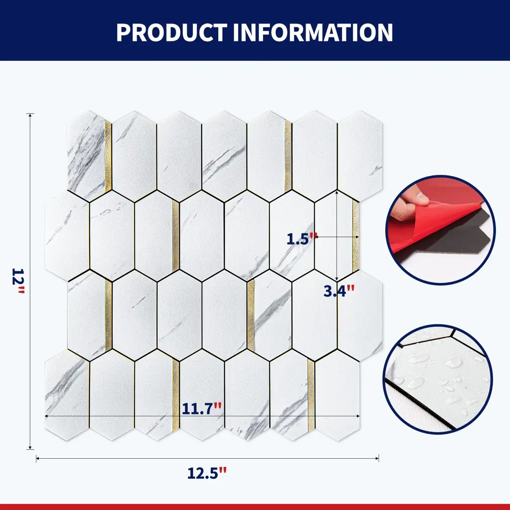 Art3d 10-Sheet Hexagon Tile Peel And Stick Backsplash,12.5x12in - White