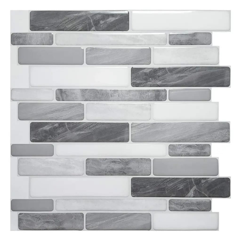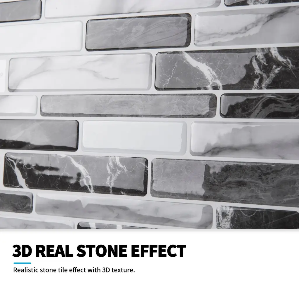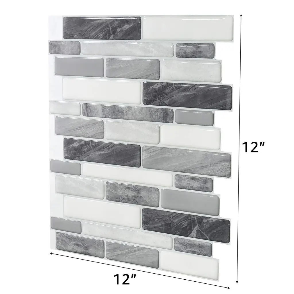 1.4 TIMES COVERAGE AREA - the size of Art3d peel and stick tile is around 12"x12", which covers 40% more area than a 10"x10" tile covers. PREMIUM PEEL AND STICK TILES - The art3d peel and stick tiles are made of eco-friendly material, resistant to heat and moisture, easy wipe to remove the stains. Suitable for smooth and clean surfaces. Stick to wall without extra glue. 10-SHEET PACKAGE - come in one box of 10 sheets premium quality 3-D gel-like tiles, total covers around 8.2 square feet area (The total coverage area is NOT 10 square feet because of the overlap area ) EASY DO IT YOURSELF - stick on backsplash tiles for kitchen or bathroom, self adhesive, steady sticky, according to the size can be a good stitching installation can be bent to corner, no grout, no glue, no mess, no special tools and no experience needed. WIDELY USE RANGE - It can be applied to decor the kitchen island walls, bathroom backsplashes, bedroom walls, laundry rooms etc, transform your living space from ordinary to extraordinary with these unique stick on tiles for backsplash! Features 12" x 12" Extra bigger size: a 12"x12" tile covers 40% more areas than a 10"x10" tile does. Embossed textures design Easy DIY, peel and stick on wall Easy clean and maintenance Easy cut and trim Light weight and heat shield Flexible and humidity resistant Heavy-metal free, formaldehyde free Art3d peel and stick tiles are smart and unique products that will simplify your life. The tiles can be easily installed directly over existing panels or smooth surface. Especially designed for kitchen backsplashes and bathroom backsplashes, the tiles are resistant to the heat of stovetops and the humidity of bathrooms.