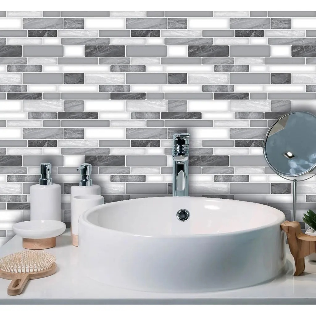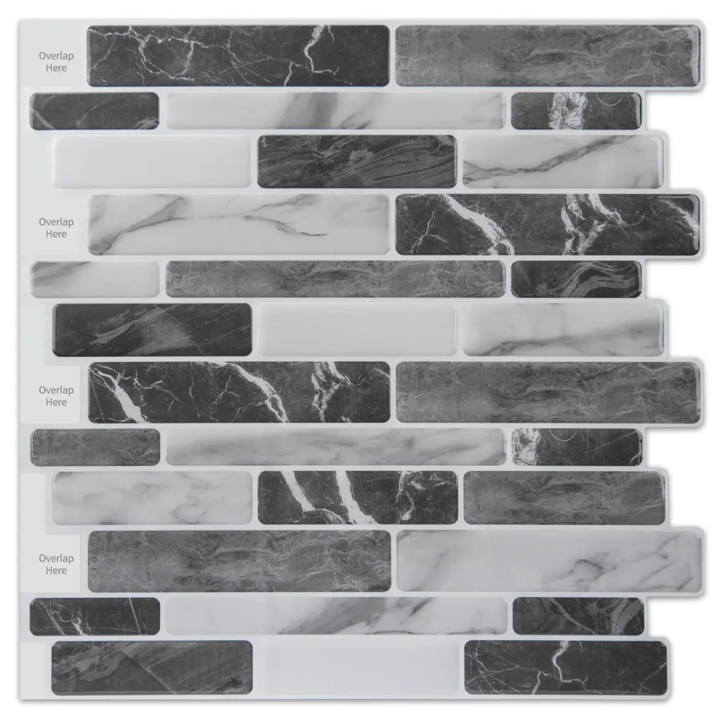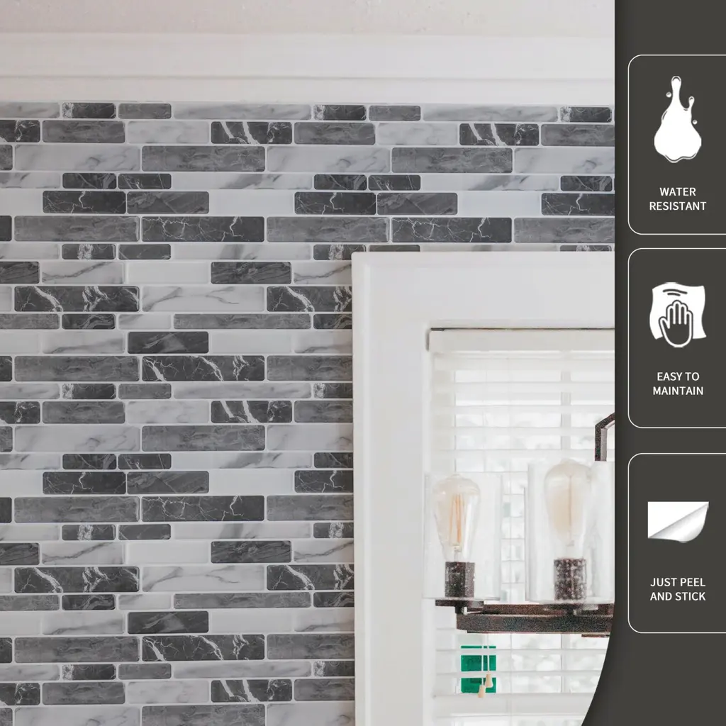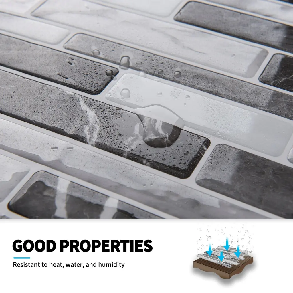 1.4 TIMES COVERAGE AREA - the size of Art3d peel and stick tile is around 12"x12", which covers 40% more area than a 10"x10" tile covers. PREMIUM PEEL AND STICK TILES - The art3d peel and stick tiles are made of eco-friendly material, resistant to heat and moisture, easy wipe to remove the stains. Suitable for smooth and clean surfaces. Stick to wall without extra glue. 10-SHEET PACKAGE - come in one box of 10 sheets premium quality 3-D gel-like tiles, total covers around 8.2 square feet area (The total coverage area is NOT 10 square feet because of the overlap area ) EASY DO IT YOURSELF - stick on backsplash tiles for kitchen or bathroom, self adhesive, steady sticky, according to the size can be a good stitching installation can be bent to corner, no grout, no glue, no mess, no special tools and no experience needed. WIDELY USE RANGE - It can be applied to decor the kitchen island walls, bathroom backsplashes, bedroom walls, laundry rooms etc, transform your living space from ordinary to extraordinary with these unique stick on tiles for backsplash! Features 12" x 12" Extra bigger size: a 12"x12" tile covers 40% more areas than a 10"x10" tile does. Embossed textures design Easy DIY, peel and stick on wall Easy clean and maintenance Easy cut and trim Light weight and heat shield Flexible and humidity resistant Heavy-metal free, formaldehyde free Art3d peel and stick tiles are smart and unique products that will simplify your life. The tiles can be easily installed directly over existing panels or smooth surface. Especially designed for kitchen backsplashes and bathroom backsplashes, the tiles are resistant to the heat of stovetops and the humidity of bathrooms.