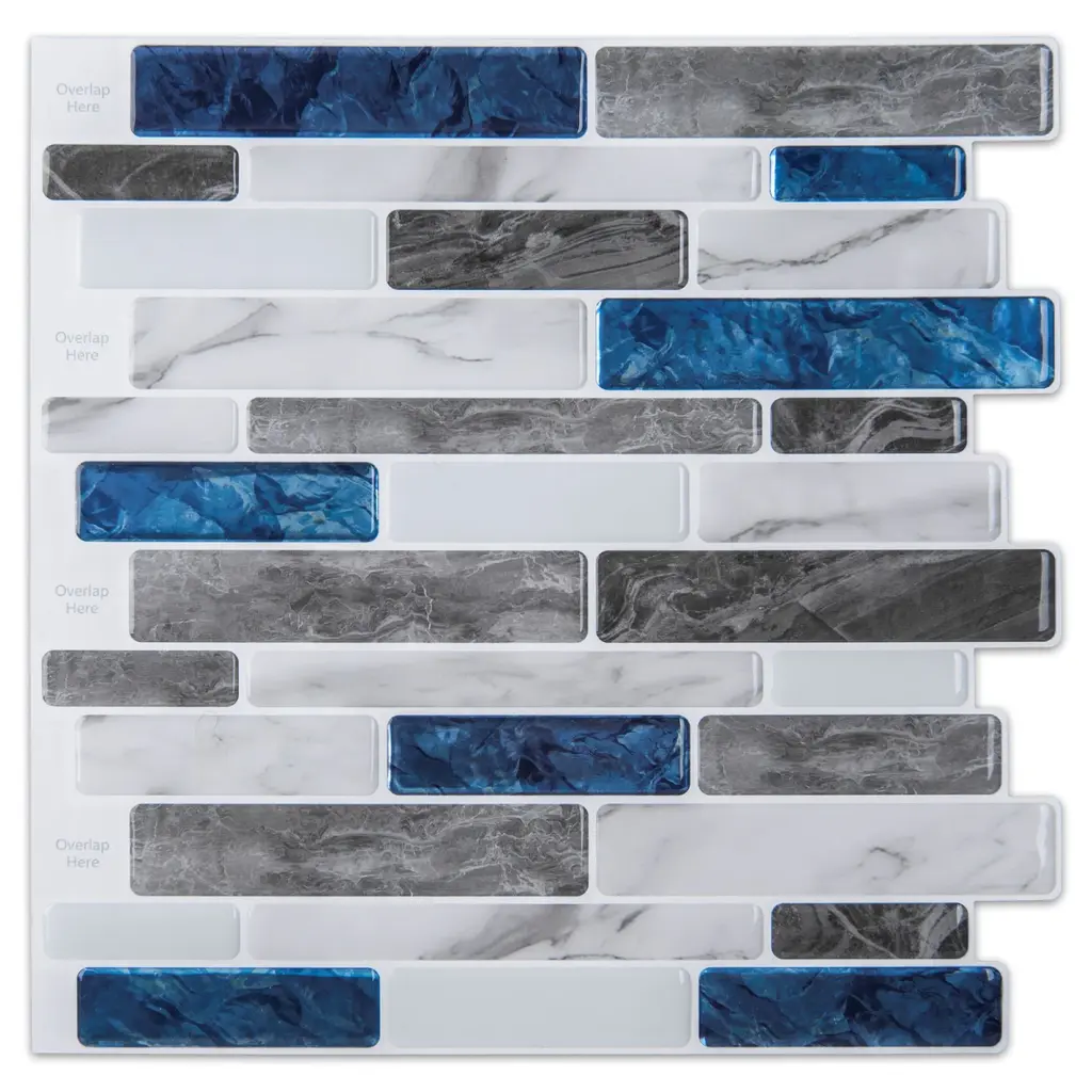 Art3d 10-Sheet Self Adhesive Backsplash Tile 12 In. X 12in. Marble Design - Blue