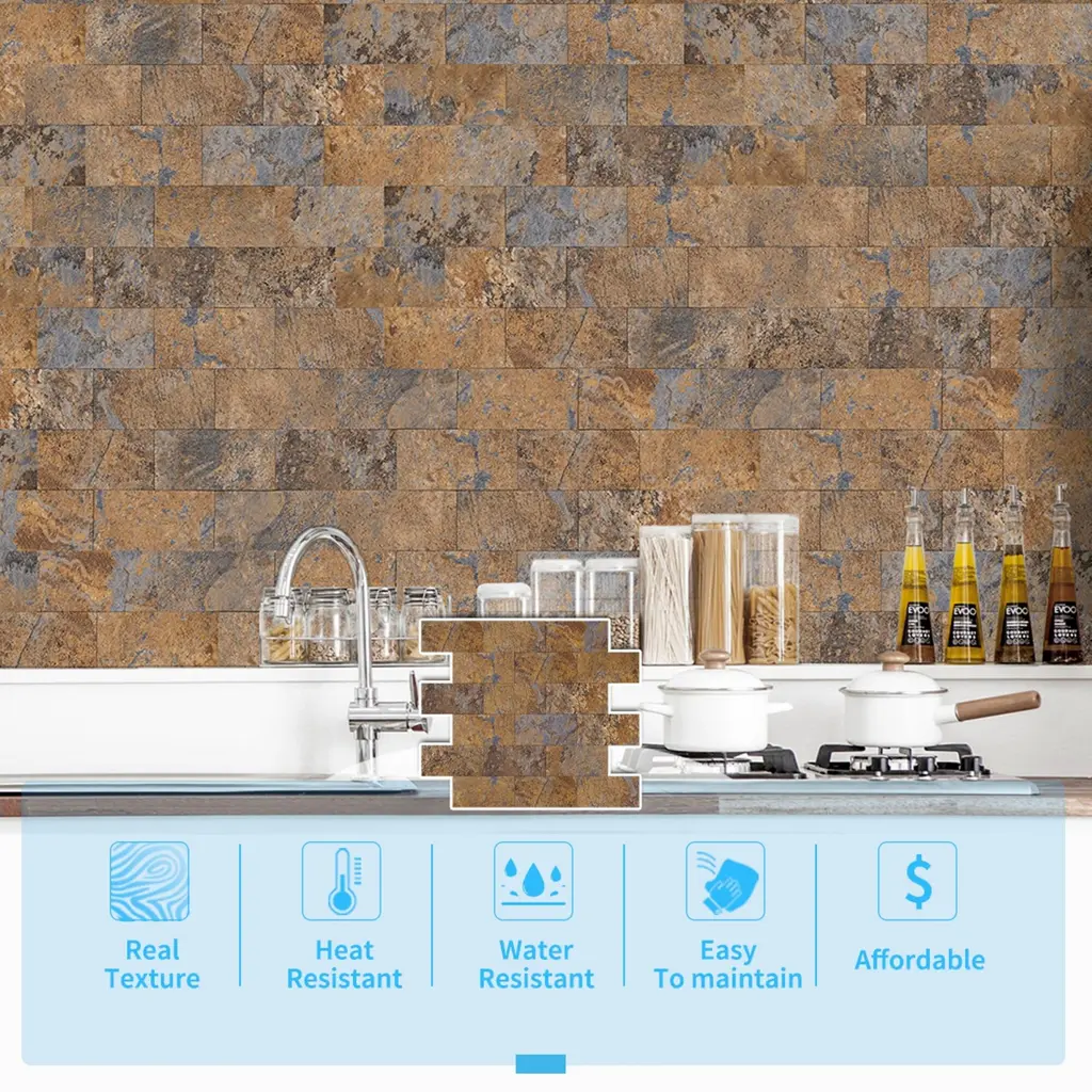 Transform your space effortlessly with Art3d Peel and Stick Tiles. These unique tiles feature a special and graceful wood-textured style that will add a touch of elegance to any room. Made of lightweight PVC composite laminate material, they are easy to install with just a peel and stick method and can be cut to size with tin snips, utility knives, or hand saws. Waterproof and heat-resistant, they are perfect for kitchen backsplashes, bathroom backsplashes, stair risers, and more. Each pack contains 10 tiles covering approximately 9 square feet of area.Features:Ideal surfaces to install Art3d peel and stick Tiles: