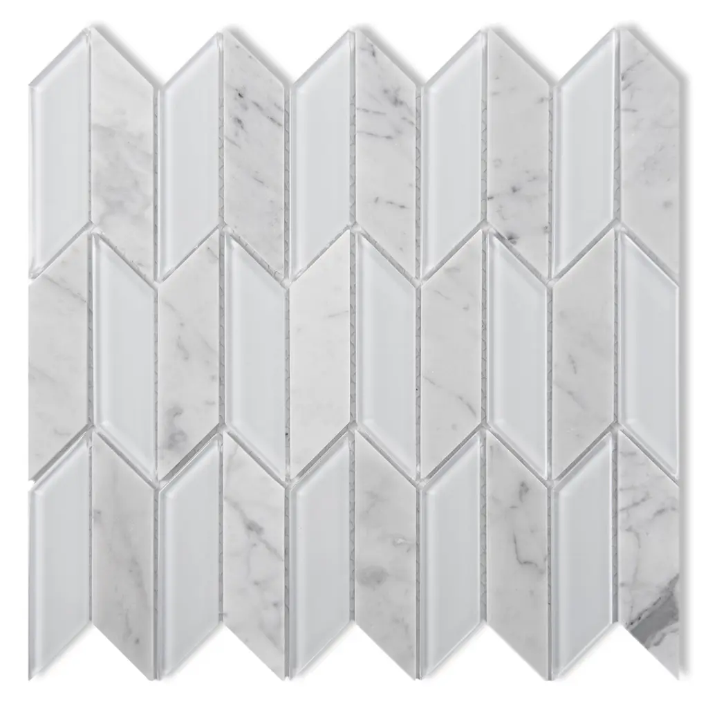 Art3d 11.8''x11.2'' Herringbone Glass Mosaic Wall Tile In White,pack Of 5 - White