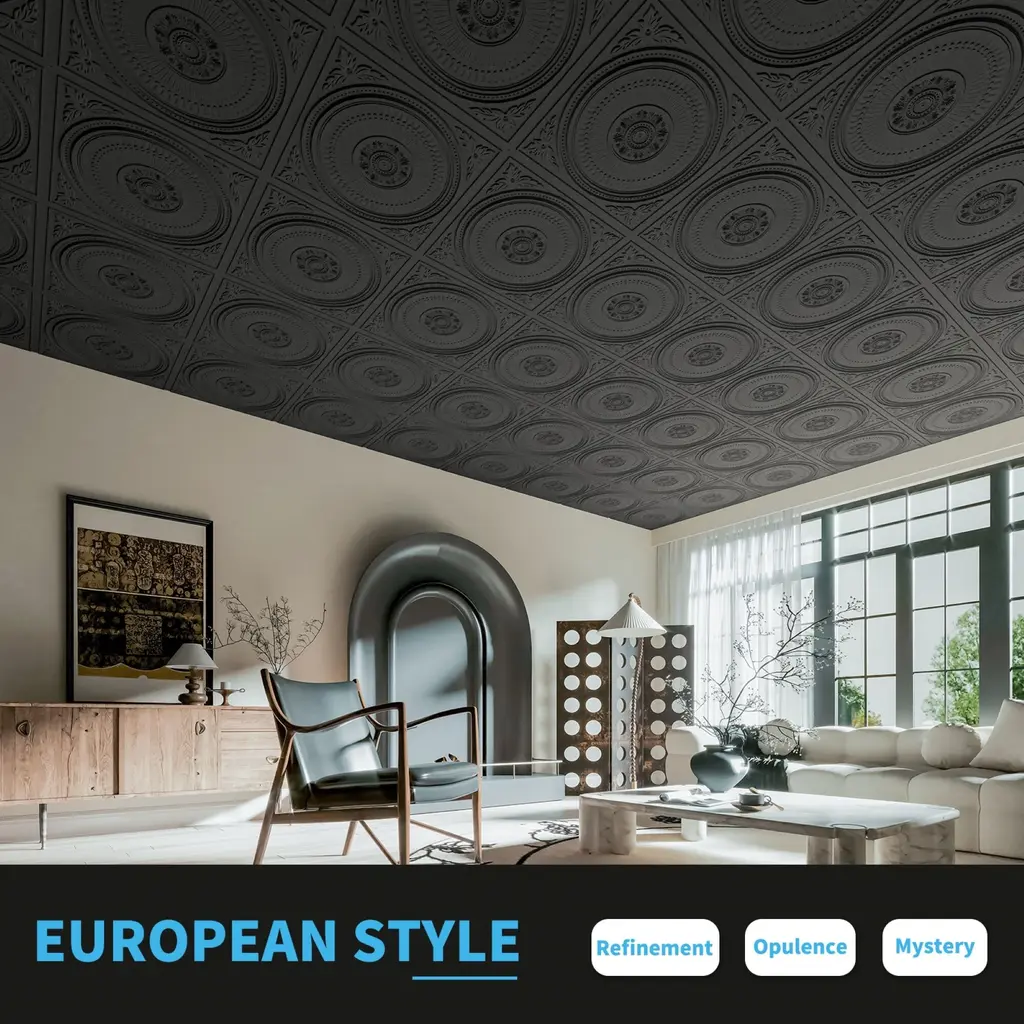 Art3d 12-Pack Drop Ceiling Tiles 24''x24'', Decorative Pvc Ceiling Panels - Black