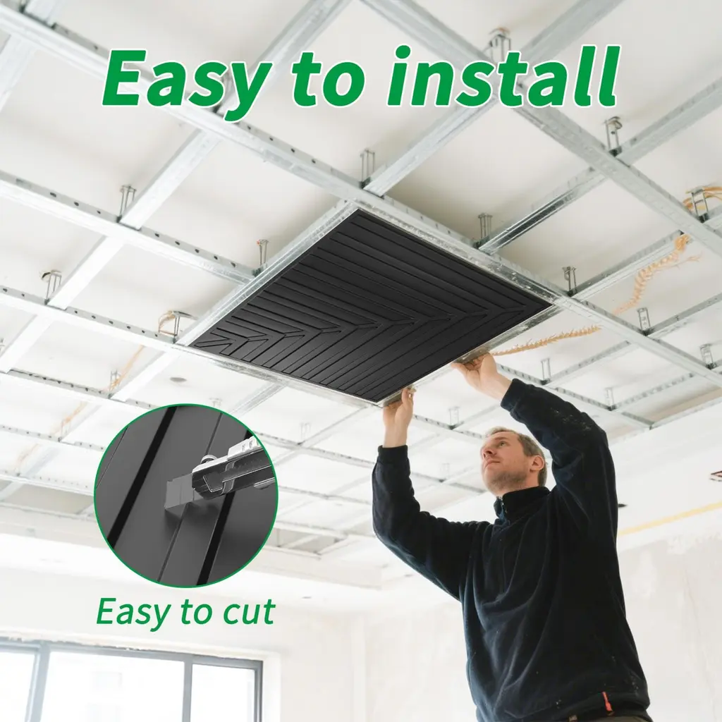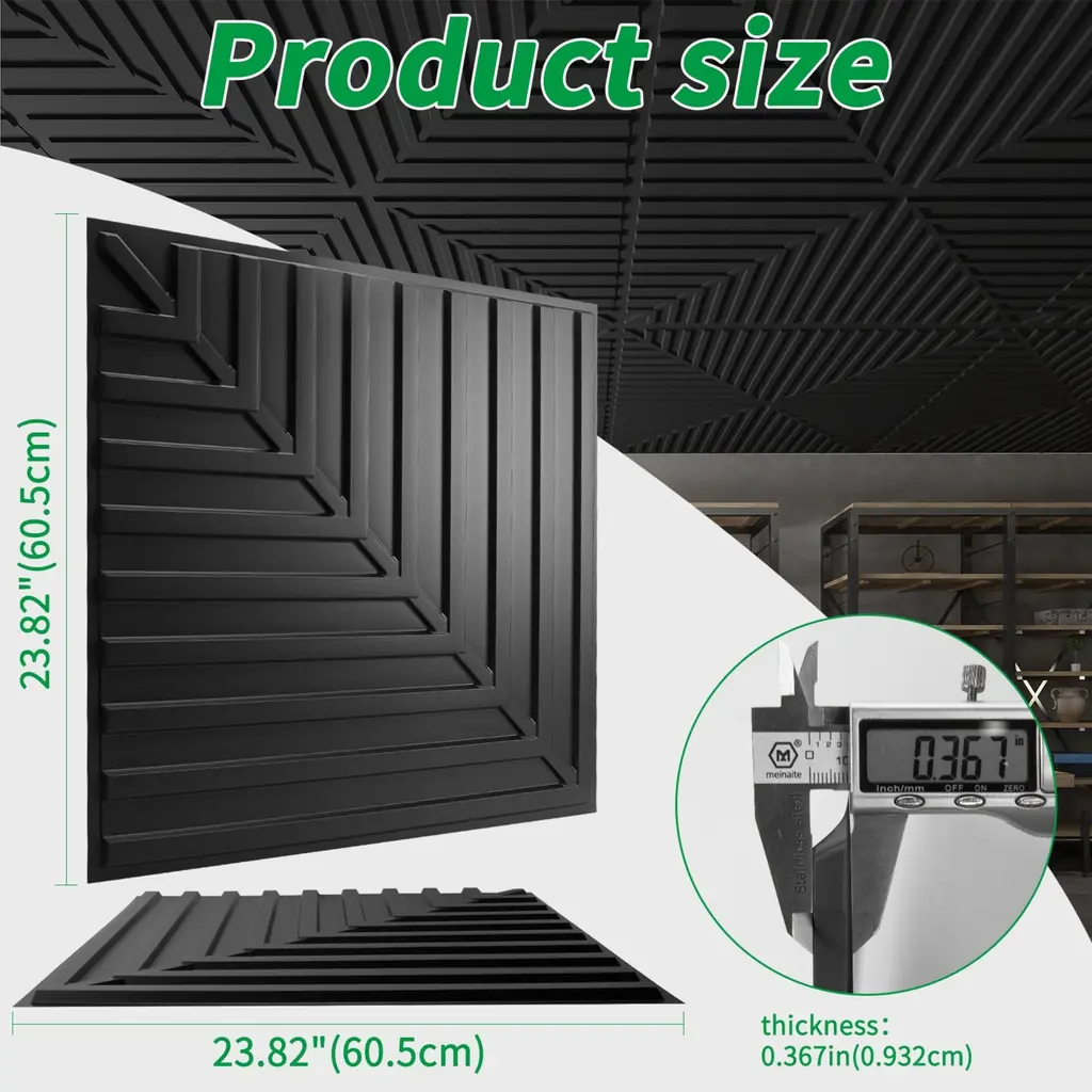 Art3d 12-Sheet 3D Pvc Wall Panels Ceiling Tiles-Cover 48sq.ft. - Black