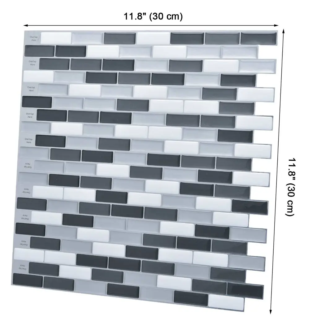 Art3d 12"×12" Vinyl Peel And Stick Backsplash Tile (6-Pack) Cold Mix - Grey - 11.8 Inch × 11.8 Inch