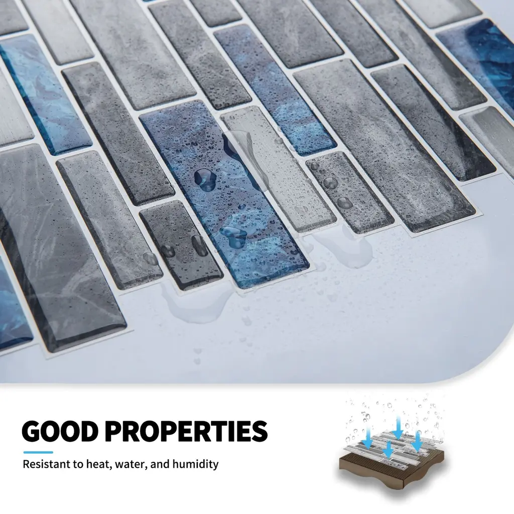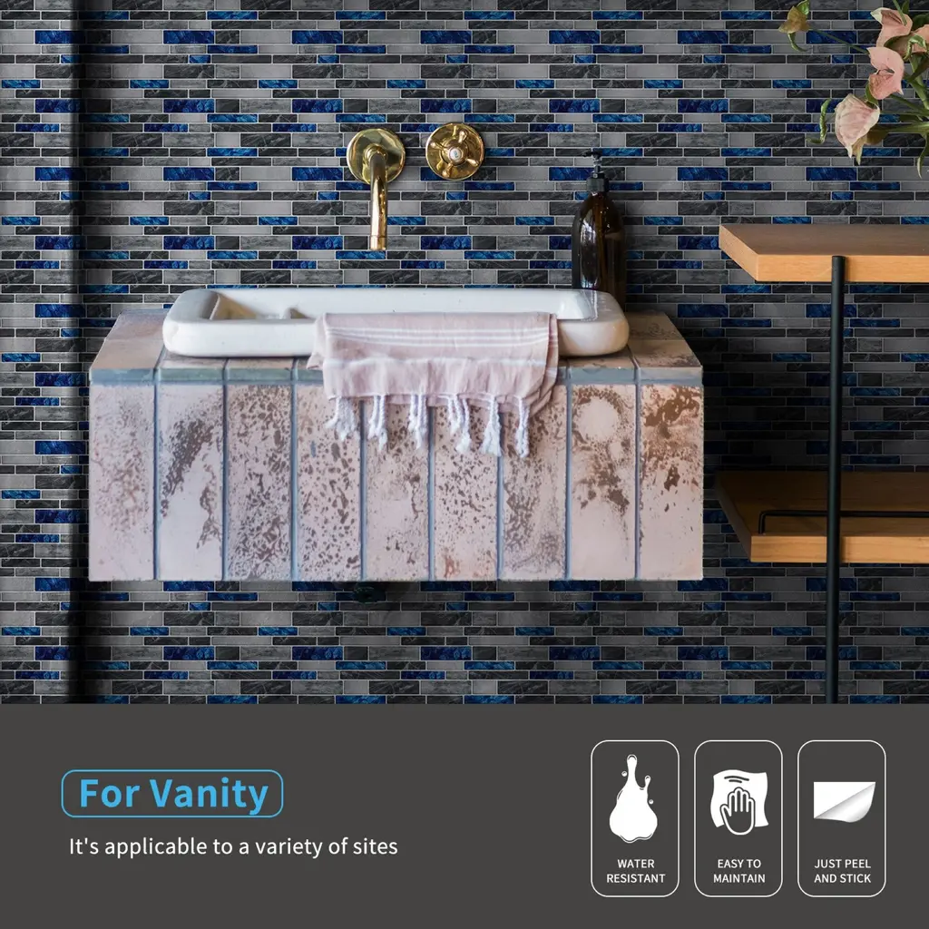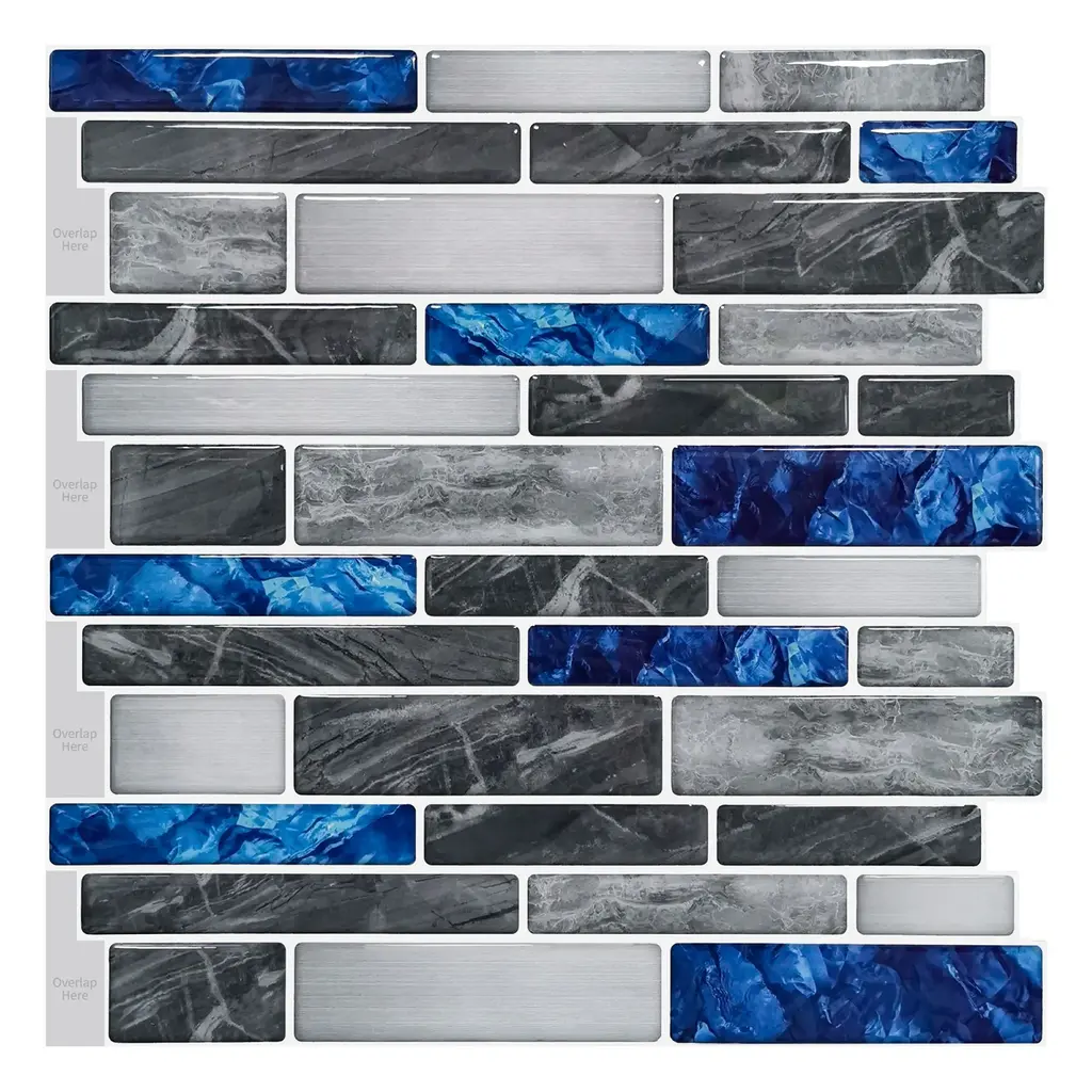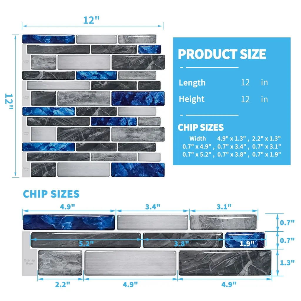 Transform your kitchen or bathroom with Art3d 12"x12" Vinyl Peel and Stick Backsplash Tiles in Marble Blue&Gray. These tiles are easy to install and will add a special and graceful style to your walls. Each tile is resistant to heat and moisture, making them easy to clean and maintain. This 10-pack of self-adhesive tiles can be used for kitchen backsplashes, bathroom walls, bedroom walls, laundry rooms, and more.Features:Please note: