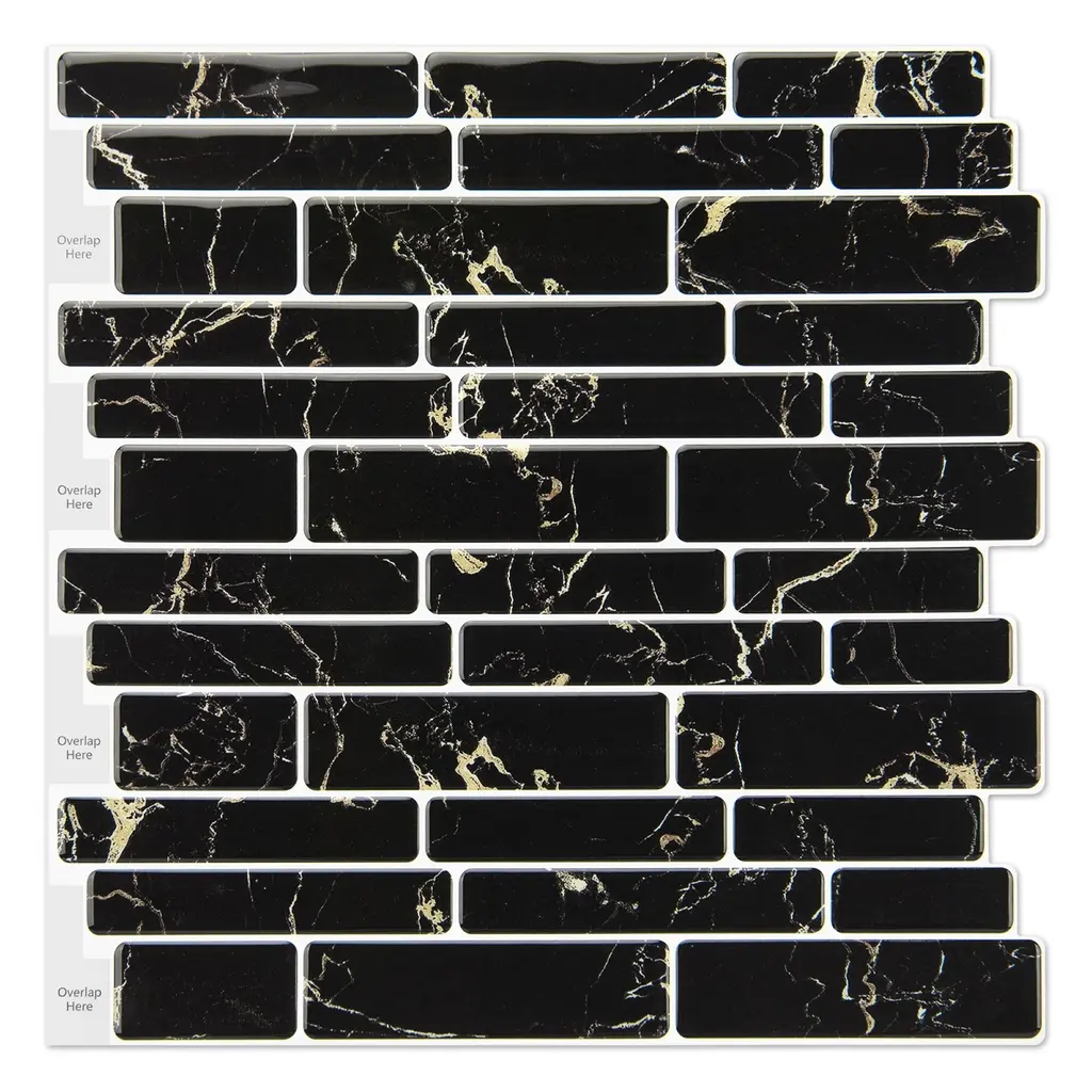 Art3d 12"x12" Vinyl Peel And Stick Backsplash Tile (10-Pack) Marble Blue&gray - 10 Pack - Black Marble