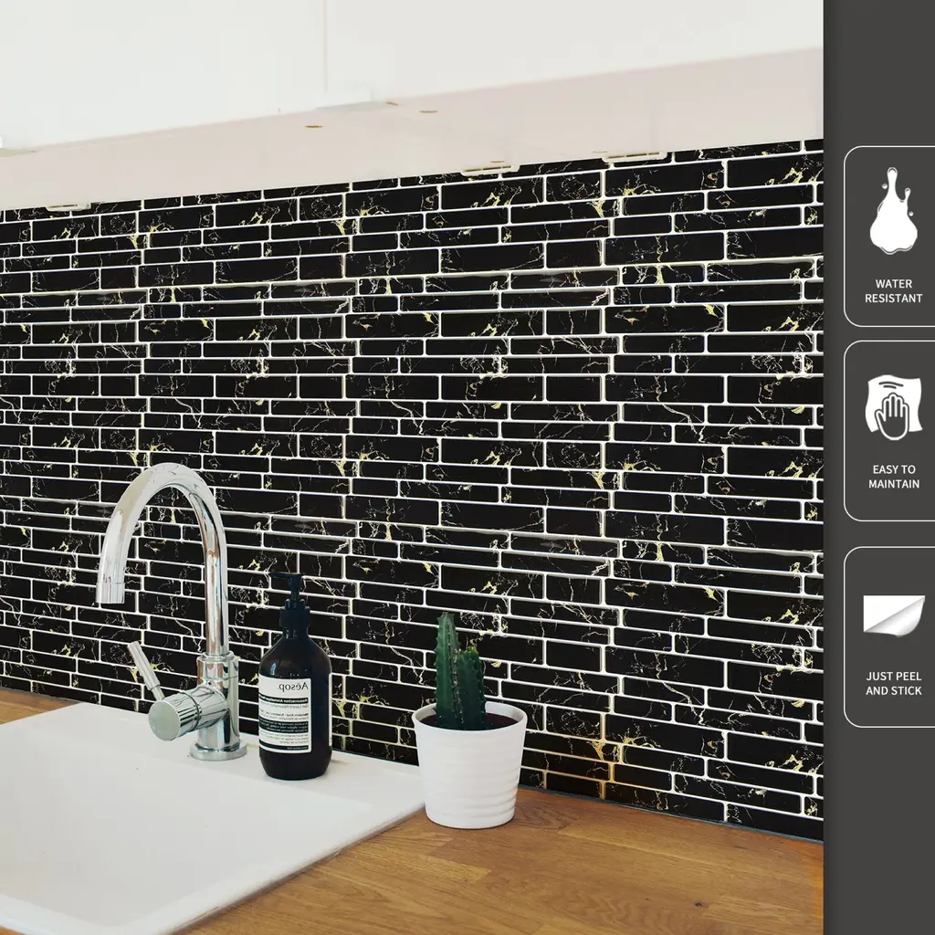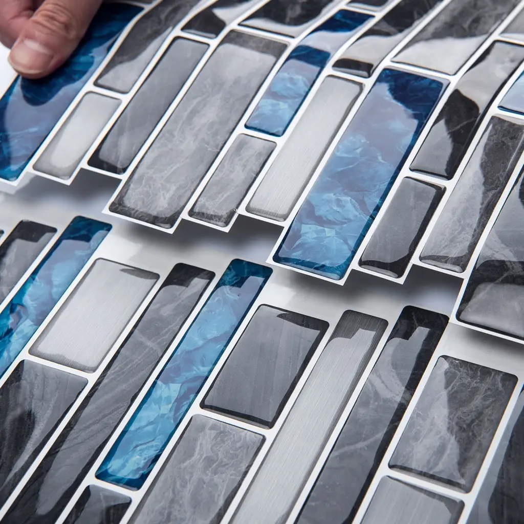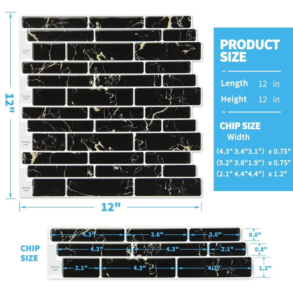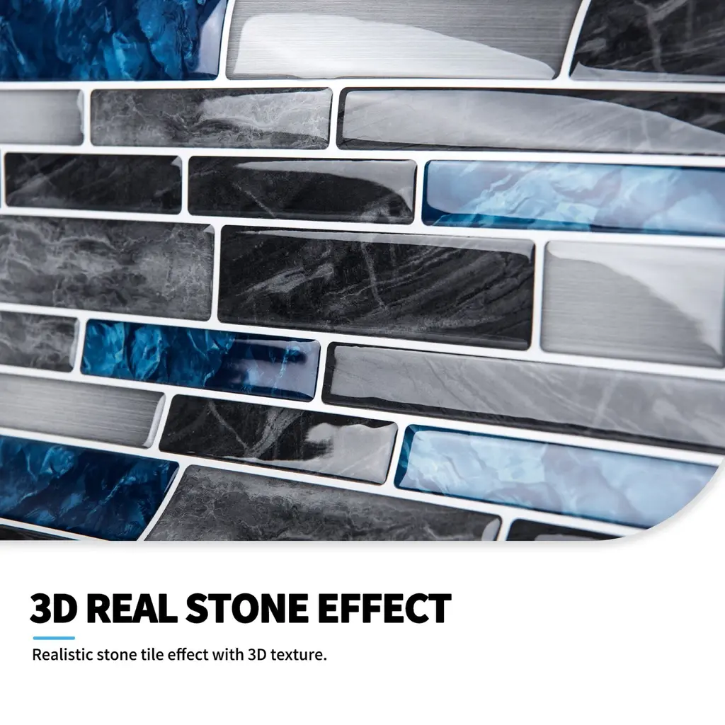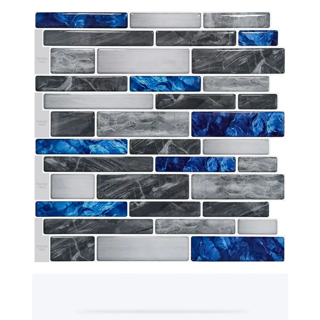 Transform your kitchen or bathroom with Art3d 12"x12" Vinyl Peel and Stick Backsplash Tiles in Marble Blue&Gray. These tiles are easy to install and will add a special and graceful style to your walls. Each tile is resistant to heat and moisture, making them easy to clean and maintain. This 10-pack of self-adhesive tiles can be used for kitchen backsplashes, bathroom walls, bedroom walls, laundry rooms, and more.Features:Please note: