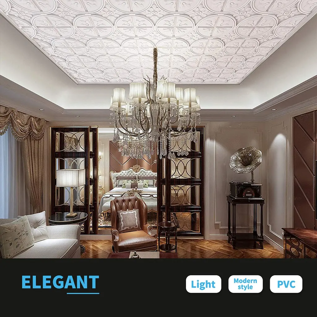 Revamp your home decor with Art3d 2x2 PVC Decorative Ceiling Tile. These 3D Ceiling Panels are an excellent solution for dull and problematic ceilings, walls, or any surface that needs covering. These tiles are light-weight, fire-resistant, and can be easily crafted into furniture designs like cabinet doors and bed headboards. The premium quality PVC ceiling panels are easy to install and cover up to 48 square feet with a box of 12 panels. The panels measure 2' x 2' (609.6mm*609.6mm) and can be installed into a standard 15/16" T-bar drop ceiling grid system or glued over any flat substrates.Features: