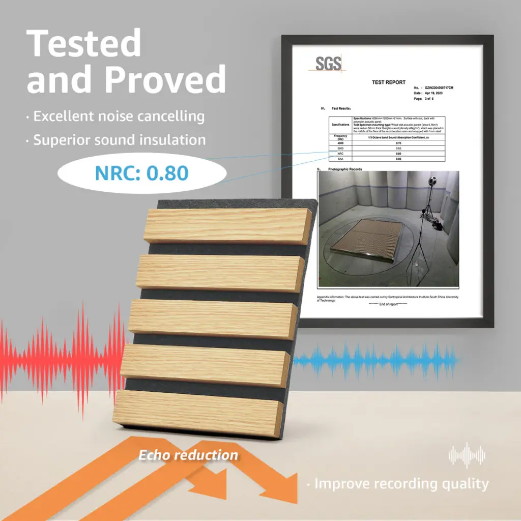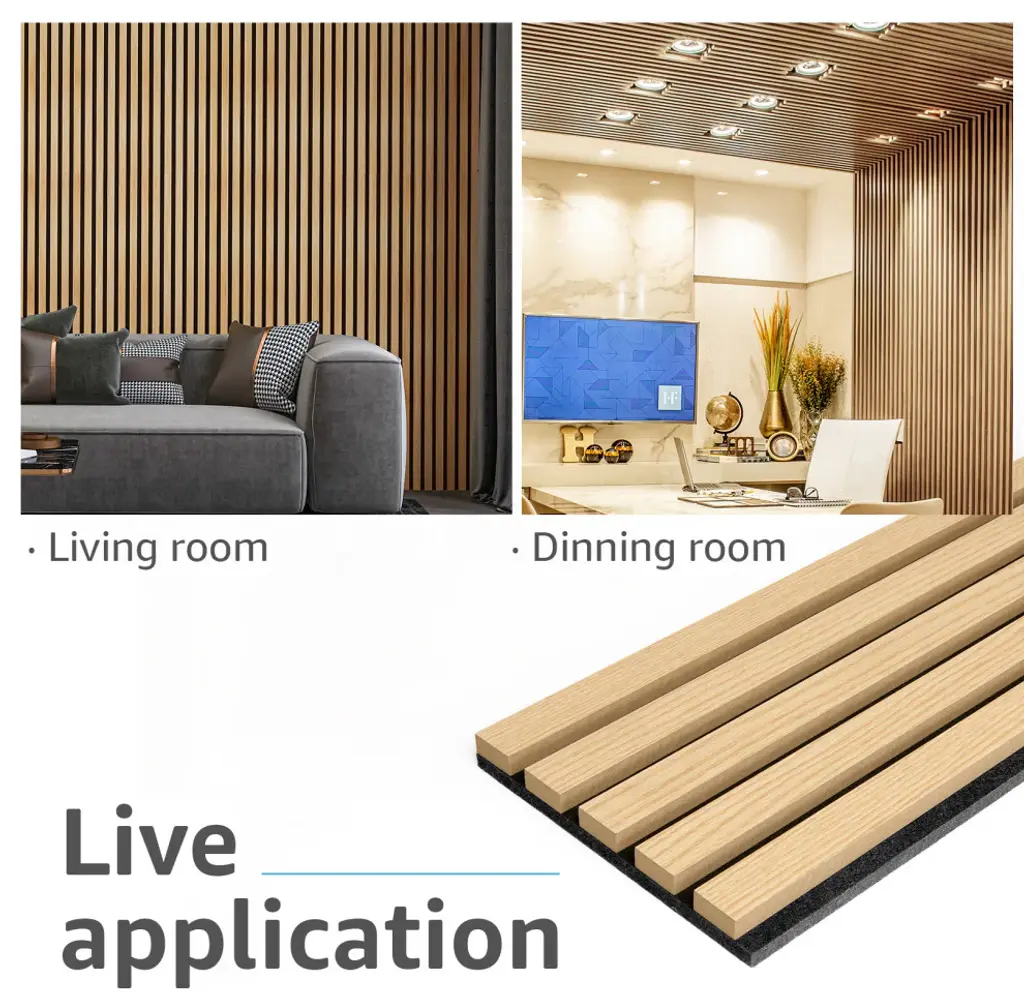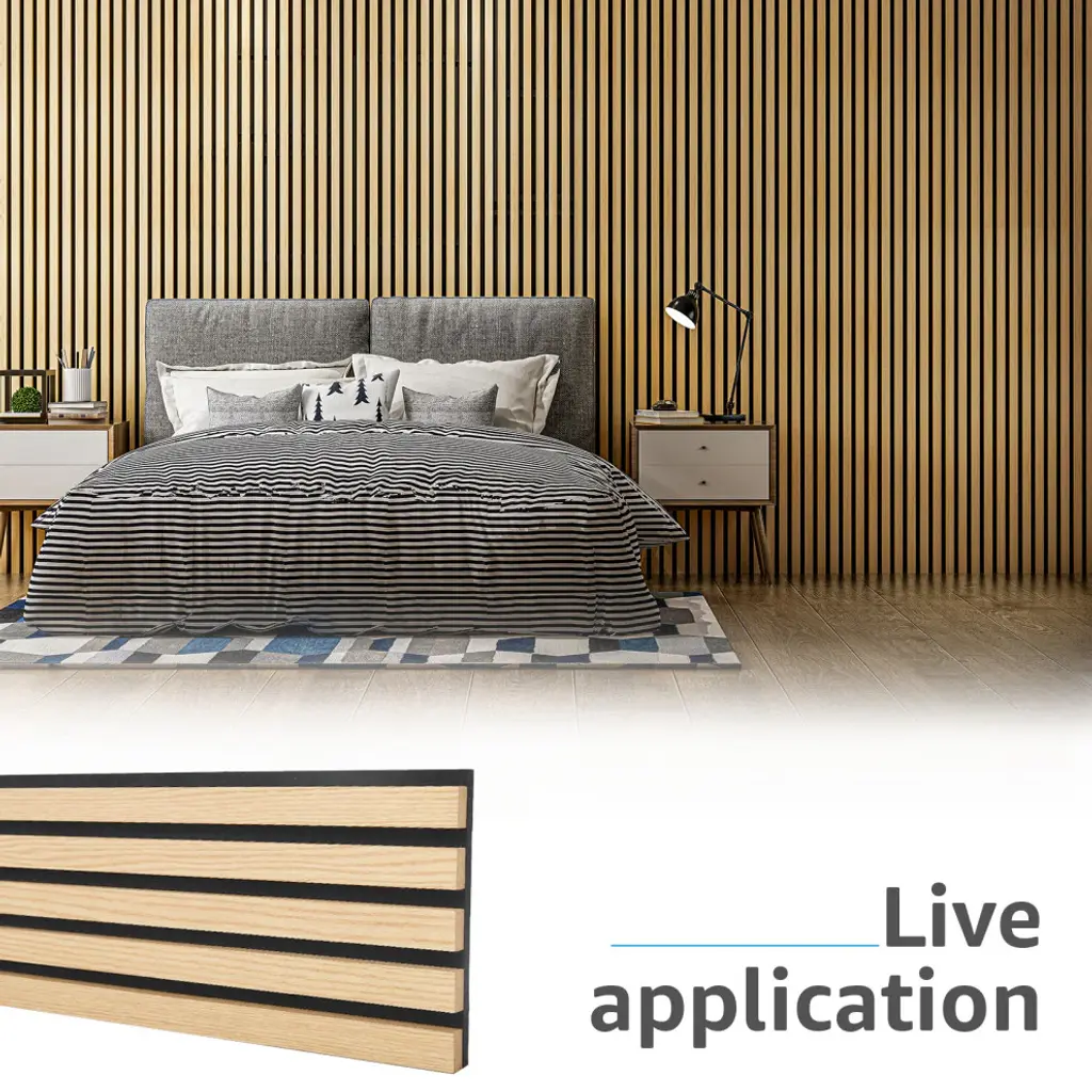 Superior Acoustic Performance: It is designed to provide excellent noise-cancellation capabilities, making it ideal for use in homes, offices, studios, and other spaces where acoustic quality is a priority.Aesthetically Pleasing: It is not only functional but also visually appealing. The wooden slats create a natural and warm appearance, adding a touch of elegance and sophistication to any room.Easy to Install: Installing is quick and easy. The panel can be mounted on walls and ceilings with basic tools in short amount of time.Safe and eco friendly: Made of quality MDF with high density polyester fiber, no harmful chemical emissions and low TVOC levels.Pack Size: Comes in a Pack of four 7.9 x 94.5in. fluted panels, which can covers about 21 sq.ft.