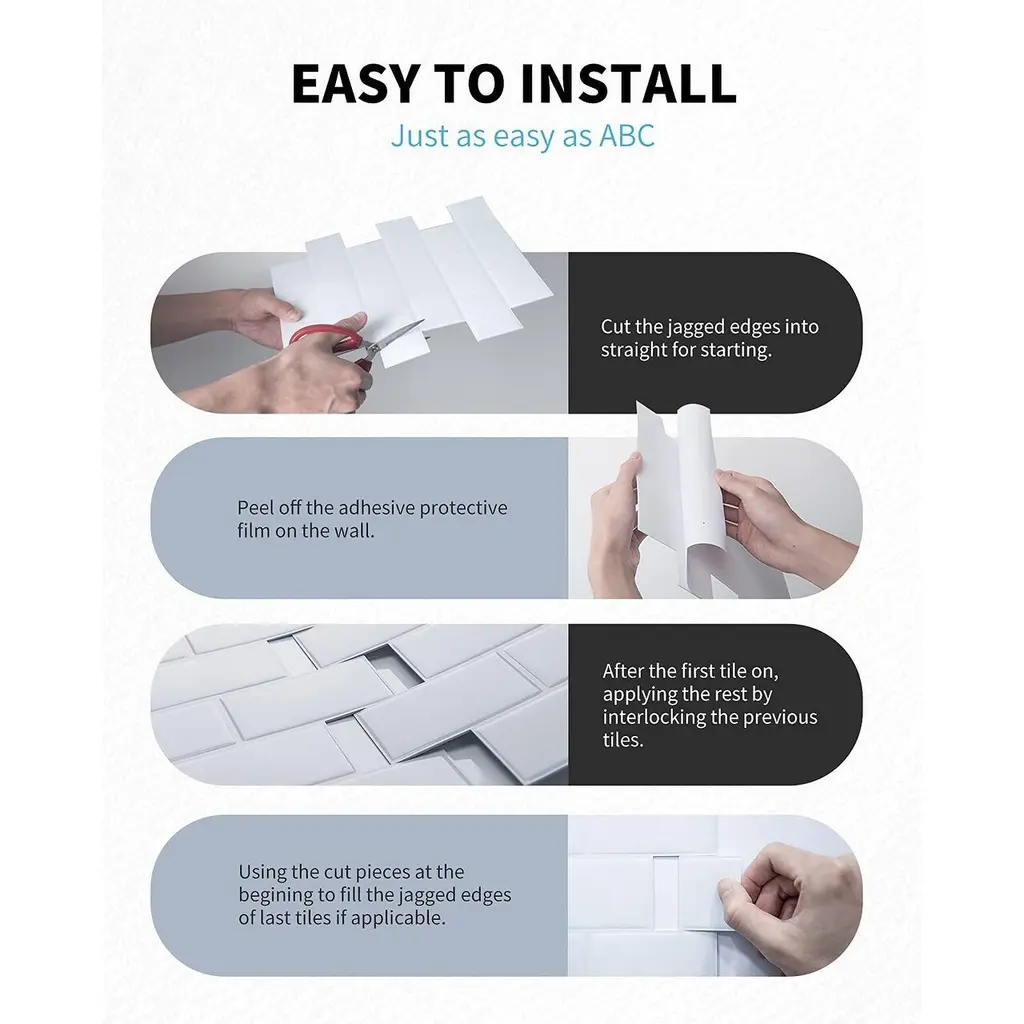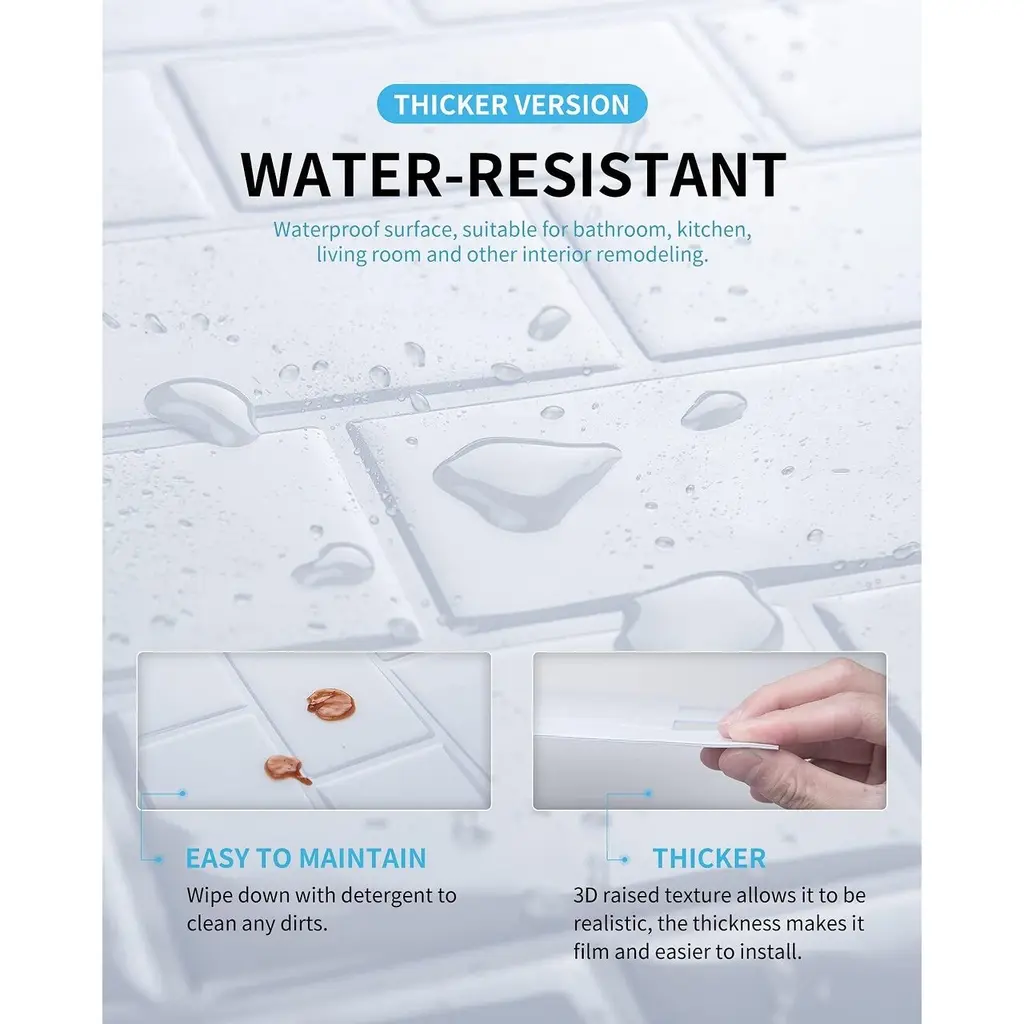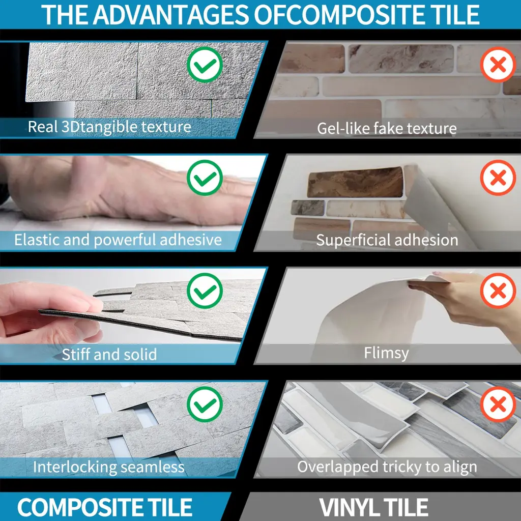 THICKER VERSION - The Art3d upgrated version tile is 2-3 times thicker than ordinary peel & stick tile, 2mm-2.5mm each, durable and solid tile, unlike soft sticker tiles STRONGER ADHESIVE - The Art3d upgraded version tile is 3X stronger backing glue than ordinary vinyl backsplash tile, not only stick firmly to the smooth & clean surface, but also available on lightly textured wall BIGGER SIZE - The size of the tile is 12"x12", which covers 40% more area than a 10"x10" tile does WATERPROOF & HEAT RESISTANT - Widely used in kitchen backsplash, kitchen island walls, bathroom backsplash, shower, fireplace, and installed behind the stove EASY DO IT YOURSELF - Just peel, interlock and stick. No need to overlap, no grout, no glue, no mess, no special tools and no experience needed