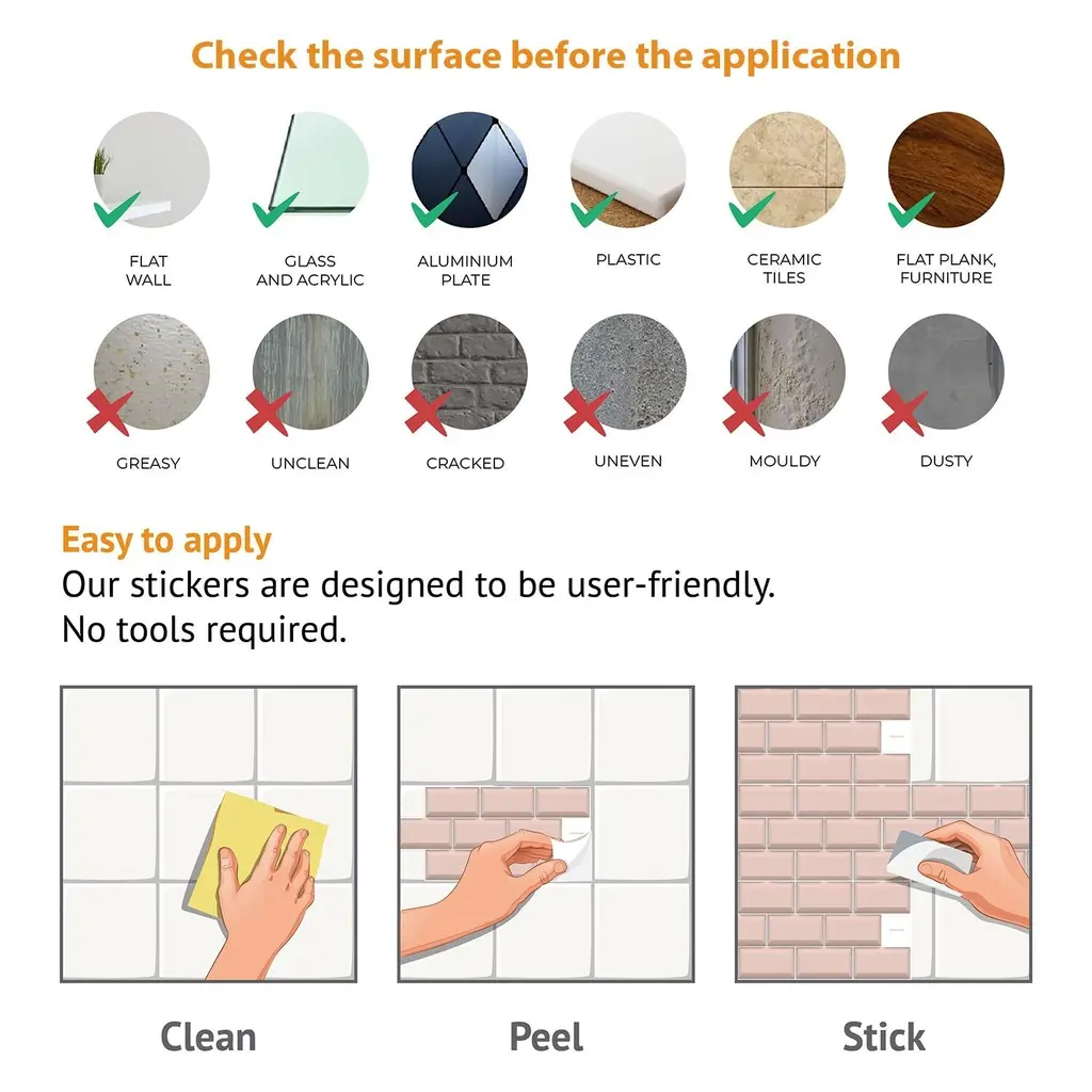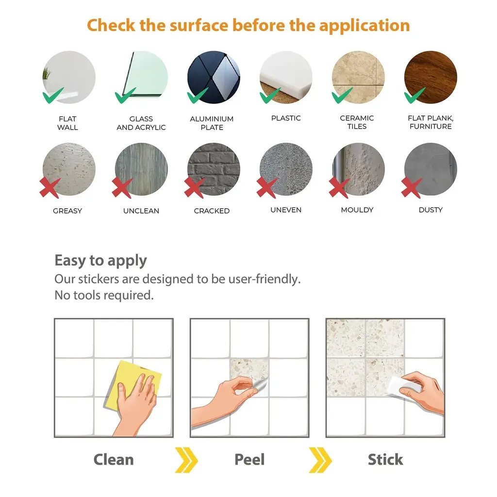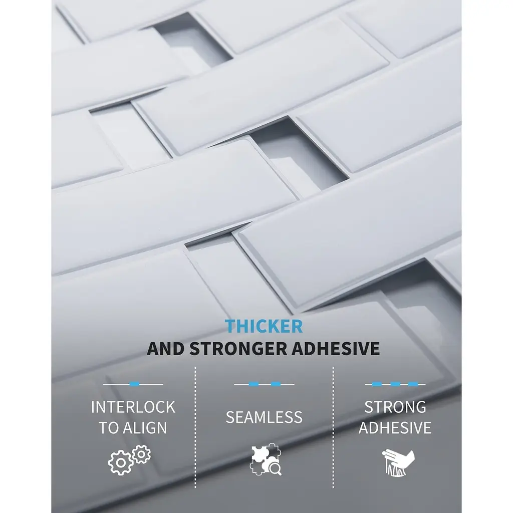 THICKER VERSION - The Art3d upgrated version tile is 2-3 times thicker than ordinary peel & stick tile, 2mm-2.5mm each, durable and solid tile, unlike soft sticker tiles STRONGER ADHESIVE - The Art3d upgraded version tile is 3X stronger backing glue than ordinary vinyl backsplash tile, not only stick firmly to the smooth & clean surface, but also available on lightly textured wall BIGGER SIZE - The size of the tile is 12"x12", which covers 40% more area than a 10"x10" tile does WATERPROOF & HEAT RESISTANT - Widely used in kitchen backsplash, kitchen island walls, bathroom backsplash, shower, fireplace, and installed behind the stove EASY DO IT YOURSELF - Just peel, interlock and stick. No need to overlap, no grout, no glue, no mess, no special tools and no experience needed