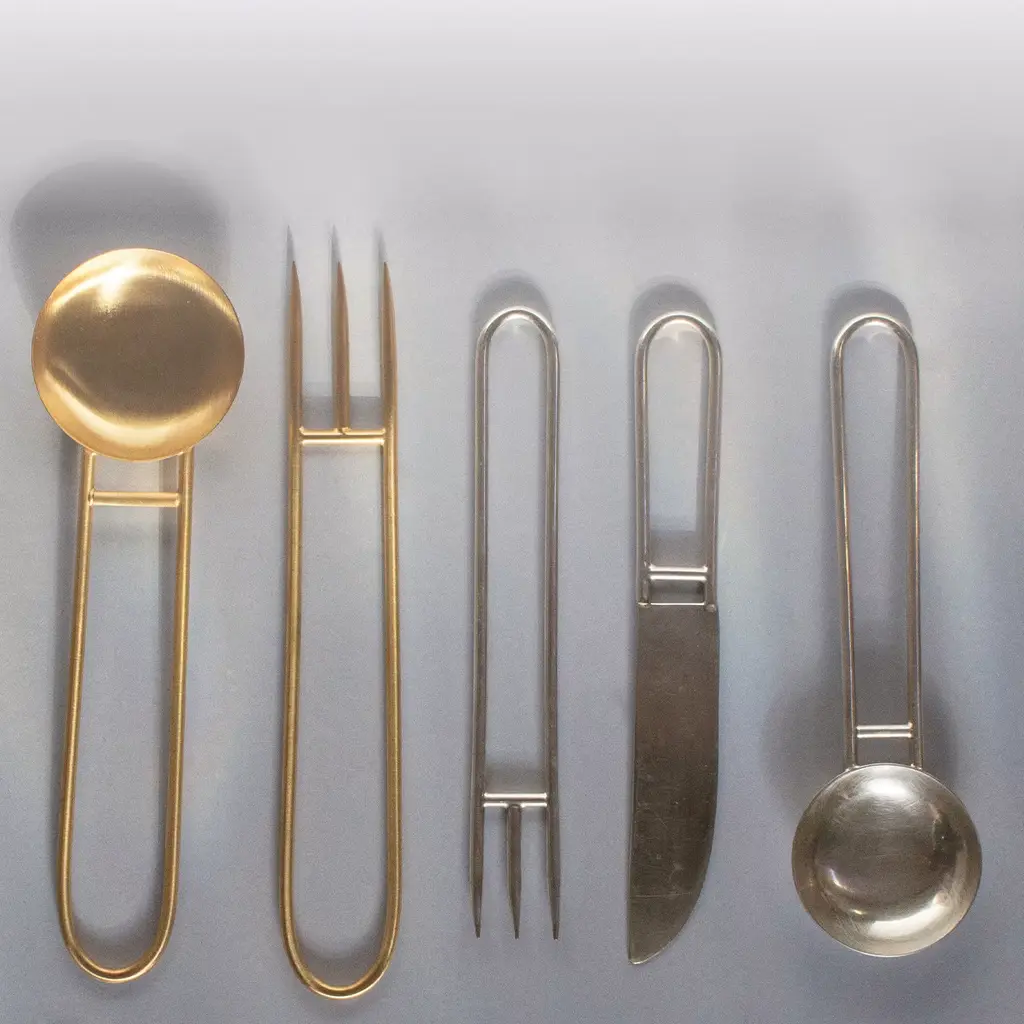 The collection is developed from a single component. Made in metal and plated with a golden finish, this server set is a unique geometric explosion. Also available in a silver plated finish.