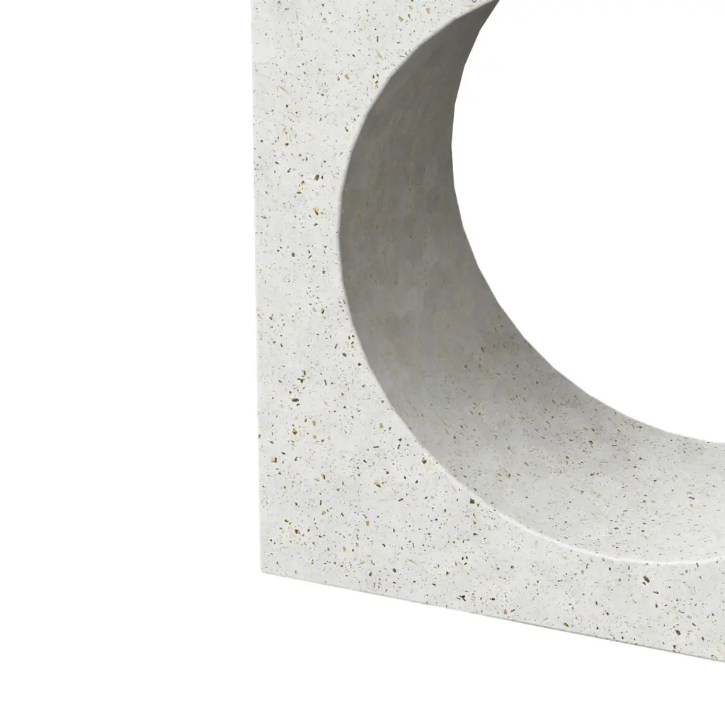 The Artem Console is a great addition to the minimalist’s space. Ideal for the entryway in the home or office, living room, and anywhere you’d display your favorite decor. The outdoor-friendly Artem is a functional piece of modern art. Features include being outdoor friendly, each piece exhibiting a unique patina, and being artisan crafted. A statement-making piece indoors or out, this console is made of reinforced concrete with a square silhouette and large circular cutout.