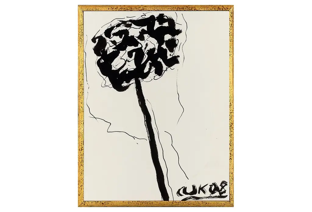 We're thrilled to offer this modern floral work exclusively on One Kings Lane. From Arthur Krakower, the father of One Kings Lane founder Susan Feldman, this print is both profound and familiar in its abstract and emotive quality, with bold strokes forming the shape of a solitary flower. Displayed under glass in a golden wood frame. Arrives ready to hang.