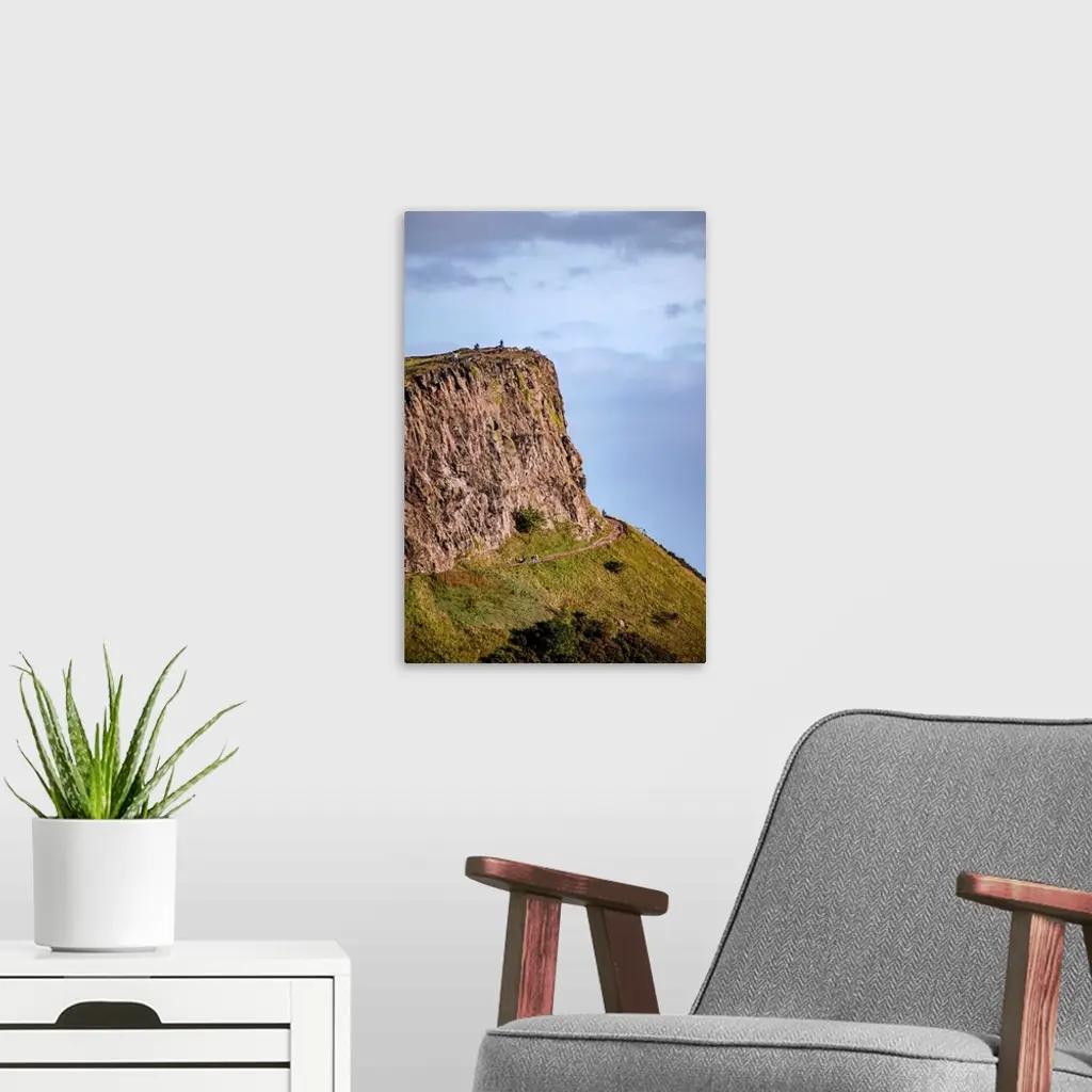 View of Salisbury Crags cliff at Arthur's Seat and Holyrood Park in Edinburgh, Scotland.