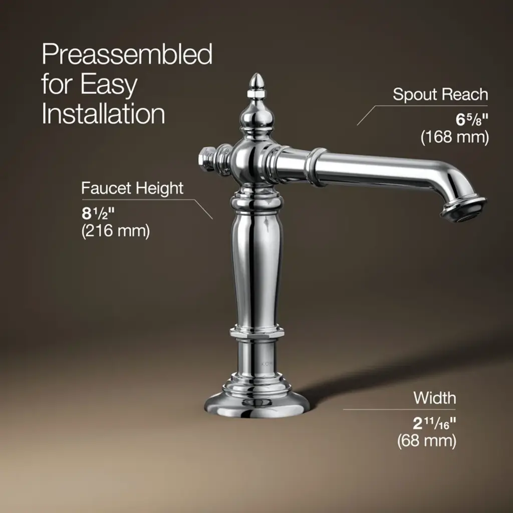 Create a look all your own with the Artifacts collection. Timeless and classic in its inspiration, artifacts allow you to coordinate faucets, accessories, showering, and finishes to express your style. Artifacts faucets combine quality craftsmanship with artisan designs to lend character and authenticity to your space - as a finishing touch or the central piece to build the room around. This Victorian-inspired bathroom sink spout features an elegant column design.