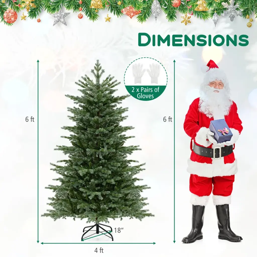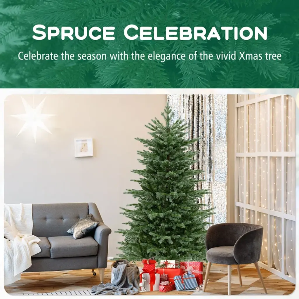 Transform your space into a spruce celebration with a Xmas tree featuring 3156 branch tips for a full and vibrant look. Crafted from premium PE and PVC materials, this Christmas tree is safe, enduring, and smell-free. The 400 energy-saving LED lights offer a warm white, cozy glow. The Xmas tree is easy to assemble with a hinged design and a sturdy metal stand, while this tree has 2 pairs of gloves to protect your hands. Celebrate the season with the elegance of the vivid Xmas tree!