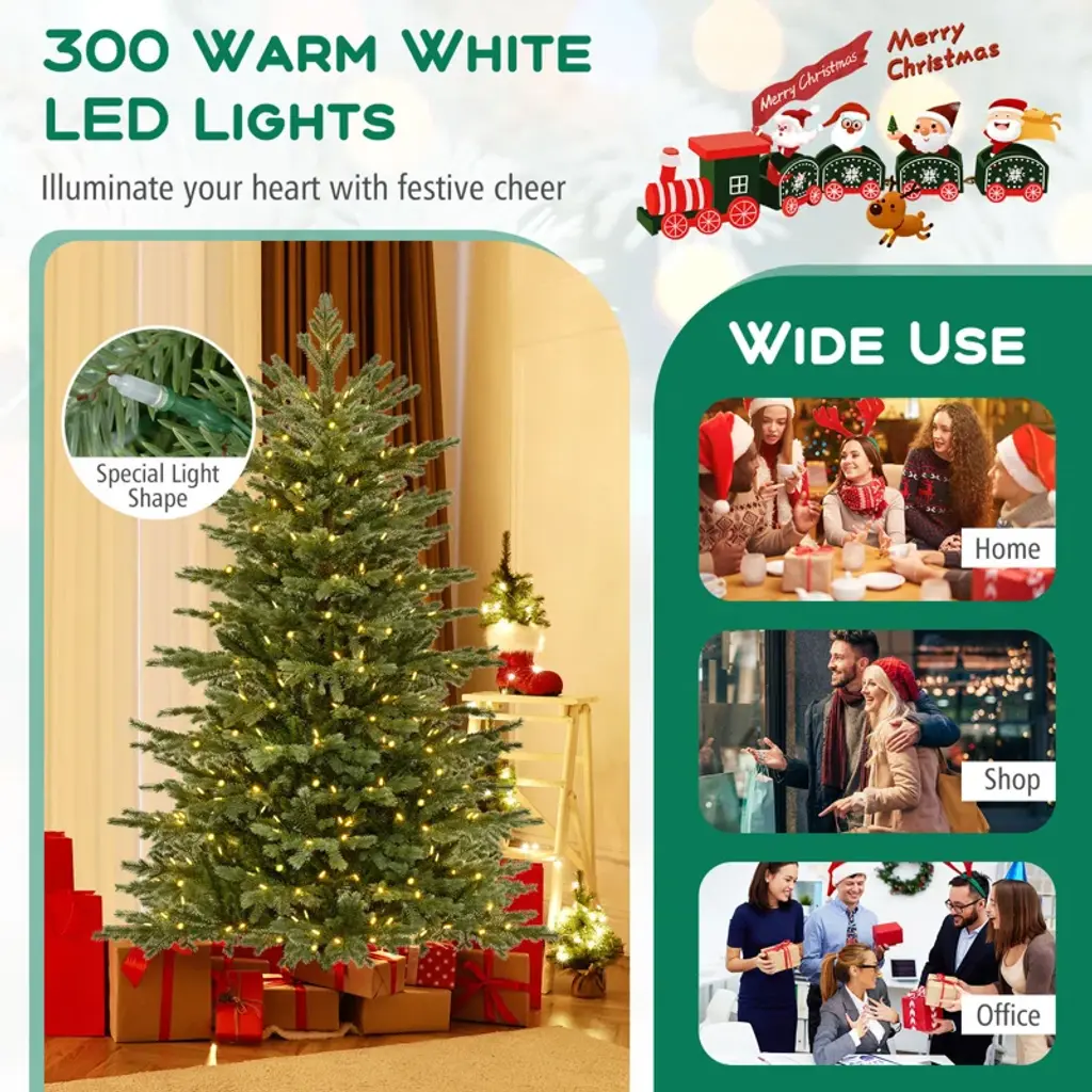Artificial Christmas Tree With 2116 Lush Pvc & Pe Tips 300 Led Lights