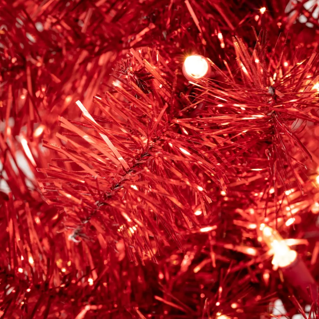 Providing your holiday decor with a burst of playful nostalgia, this 7-foot tree is a colorful creation that is sure to brighten spirits. Illuminated with warm, white solid lights which look fab when on and even super-mod when off, this look will be a hit each and every year! Over the last 55 years, Sullivans has become an industry leader in home decorations. Our brand is rooted in tradition while incorporating modernized trends to keep your home looking up to date with timeless style. Here at Sullivans, we pride ourselves on creating product designs focused on quality and value, ensuring that our customers have access to beautiful products at reasonable price points. • Accentuate your space with this 81" artificial red illuminated tinsel tree • This beautiful red Christmas tree will brighten up your living space • High-quality artificial tree will be a place to set your presents under for years to come • Crafted with individually wired, bendable stems so you can shape and fluff to your liking • This Christmas tree measures 29"L x 29"W x 81"H