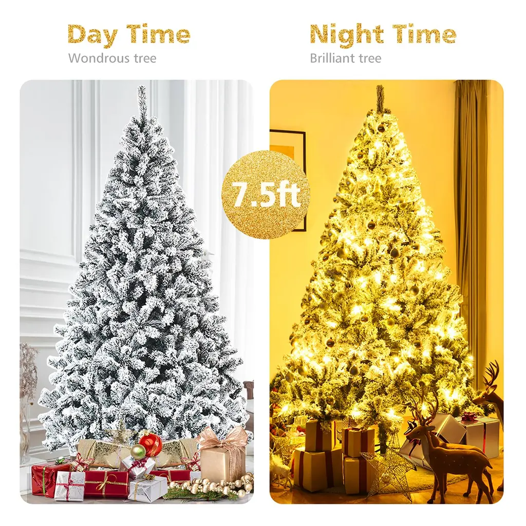 Artificial Snow Flocked Christmas Tree Snowy Hinged Pine Tree - 7.5 Foot