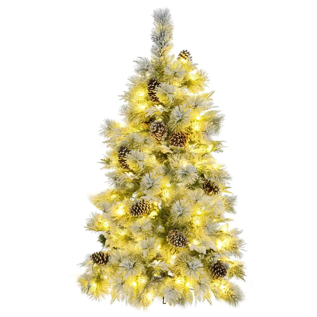 Product Overview: Bring the magic of a snowy forest indoors with this Snow Flocked Christmas Tree, available in 4FT, 6FT, and 7.5FT sizes. Decorated with pine cones and pre-lit with LED lights in warm and multicolor modes, this tree is crafted from high-quality PE and PVC for a realistic holiday display that lasts season after season.Product Features:Specifications:Suitable Scenarios: Ideal for indoor holiday decor, adding seasonal charm to homes, offices, and gatherings.Note: Assembly required. Instructions included for easy setup and storage.