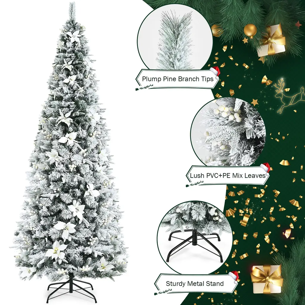 SpecificationsKey Features● Durable Lush Tree: With a snowy flocked design, the 6 ft Christmas tree echoes the winter season, while boasting 644/956/1370 branch tips to display impressive vibrancy. Besides, it is made of 100% new PVC that resists fire, fading and won't cause any allergies. ● Warm White Glow: To bring more festive magic, up to 300/450/600 LED lights are included to present a warm white lighting show. Meantime, the Christmas tree is fitted with the UL-certificated adapt-or that promotes safety. People at your party will be truly touched. ● 3-Minute Quick Shape: The Xmas tree boasts an upgraded hinged frame that allows auto-expanding of branch tips, without manually fluffing. Thus, 3-minute quick shape process will be ensured to reduce the setup time. Besides, we offer 2 pairs of gloves for better hand protection. ● Upgraded Metal Stand: Unlike traditional stands, the Christmas tree is fitted with an upgraded metal stand for stable support, which features a preinstalled bolt. All you need to do is install 3 sections in order and problems of mismatching will be avoided. ● Best Xmas Symbol: To delight your guests, the Xmas tree is ideal for family, friends or business gatherings. For your preference, it can be placed in any corner of mall, shop, office, home or carnival to enhance an impressive Xmas atmosphere.