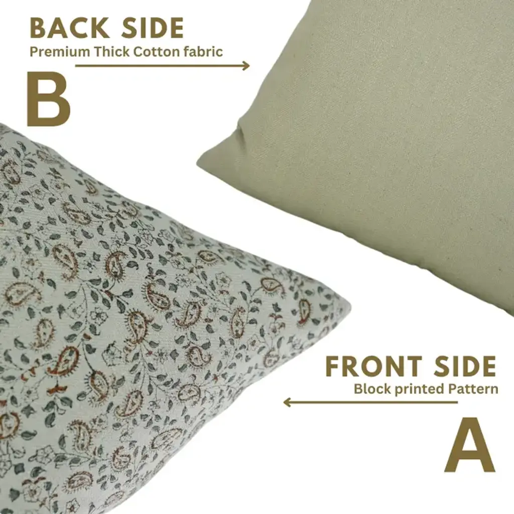 The Keri Jaal cushion cover features a flowing hand block print that reflects abundance and heritage. Crafted from a cotton-linen, the fabric offers a soft, breathable texture with everyday durability. The invisible zipper ensures a clean, refined edge. Handcrafted by skilled artisans, this cushion cover adds a touch of classic Indian artistry and organic rhythm to your living space.