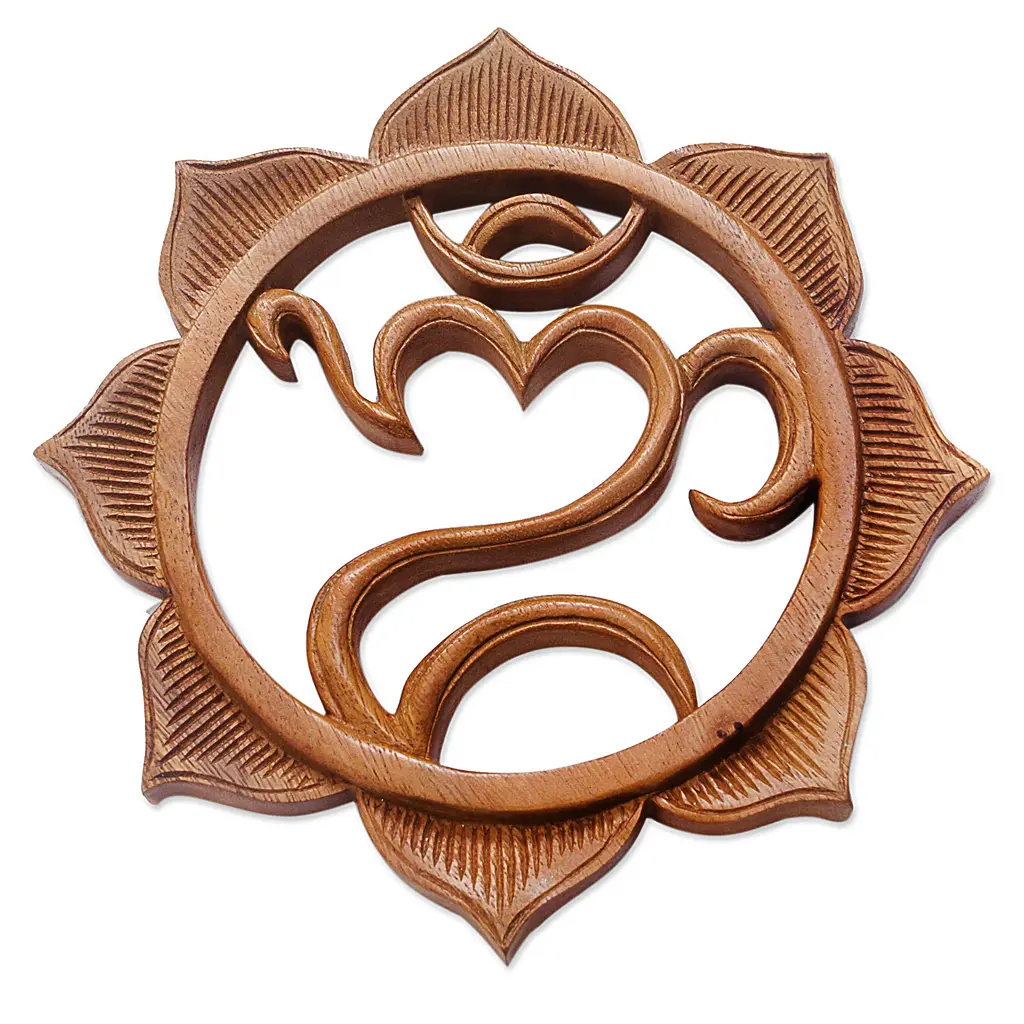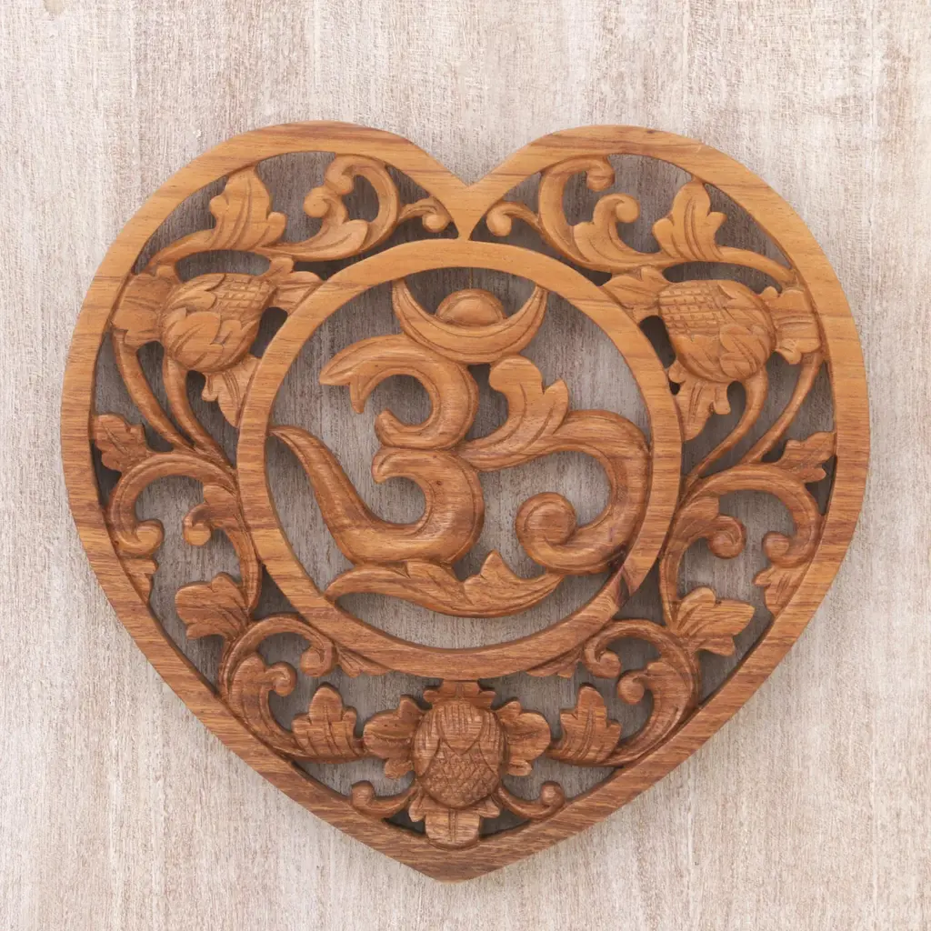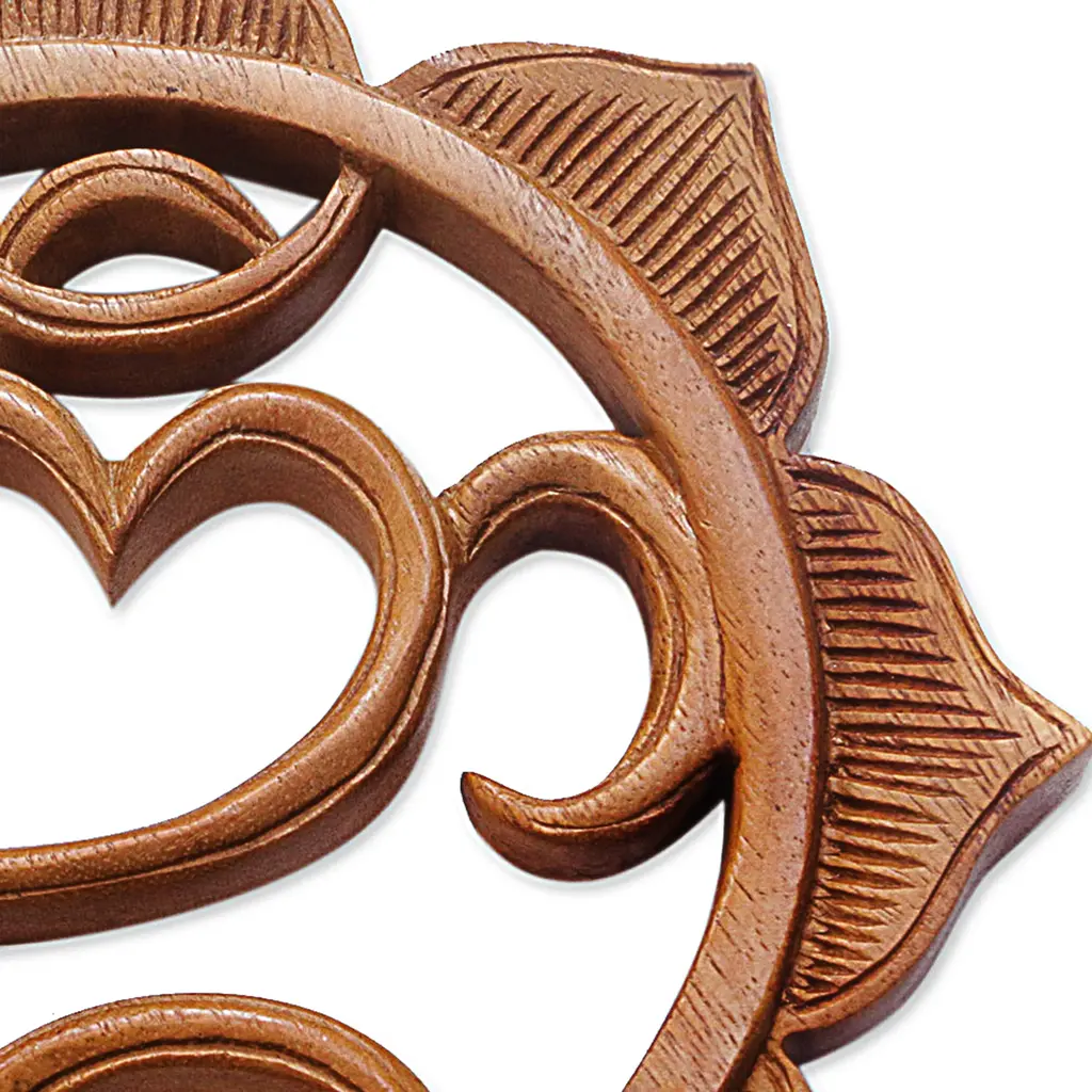 Artisan Carved Balinese Hindu Wood Relief Panel- Omkara
